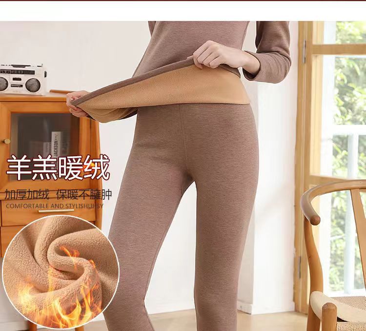 Женские термобрюки на флисовой подкладке со встроенным базовым слоем из овечьей шерсти, леггинсы из хлопковой шерсти со средней высокой талией, шерстяные брюки больших размеров для зимнего корректирующего силуэта.