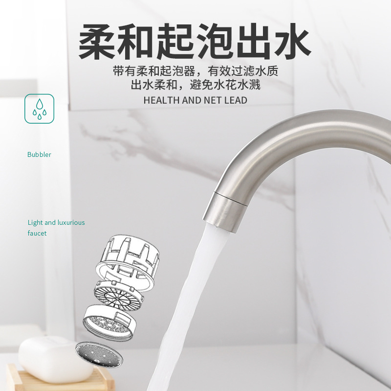 Смеситель для раковины из нержавеющей стали 304, смеситель для раковины, смеситель для ванной комнаты, вращающийся смеситель с одним отверстием