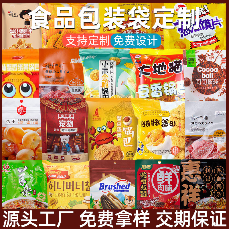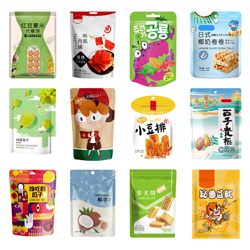 Пластиковый пакет для упаковки пищевых продуктов трехсторонняя герметичная композитная пленка цветная печать самонесущая сумка на молнии пищевой самонесущий самоуплотняющийся мешок печать