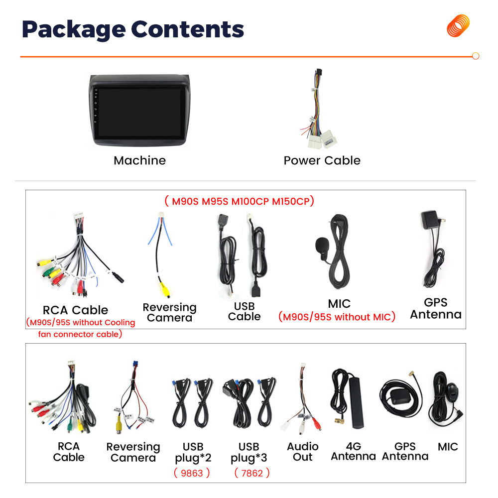 M90S 4 ядра 1 + 32G WIFI Edition; M95S 4 ядра 2 + 32G версия WIFI + Carplay + авто; M100CP 4 ядра 1 + 32G версия WIFI + Carplay + Авто; M150CP 4 ядра 2 + 32G версия WIFI + Carplay + авто; M200S 9863 8 ядер 2 + 32G 4G + Wi-Fi + Carplay; M300S 8 ядер 3 + 32G 4G + WIFI + Carplay; M400S 9863 8 ядер 4 + 64 Carplay + DSP + 4G + WIFI; M500S 8 ядер 4 + 64 Carplay + DSP + 4G + WIFI; M600S 8 ядер 6 + 128G Carplay + DSP4G + WIFI; M700S 8 ядер 8 + 128G Carplay + DSP4G + WIFI; M800S 7862S 8 ядер 8 + 256G Carplay + DSP 4G + WIFI