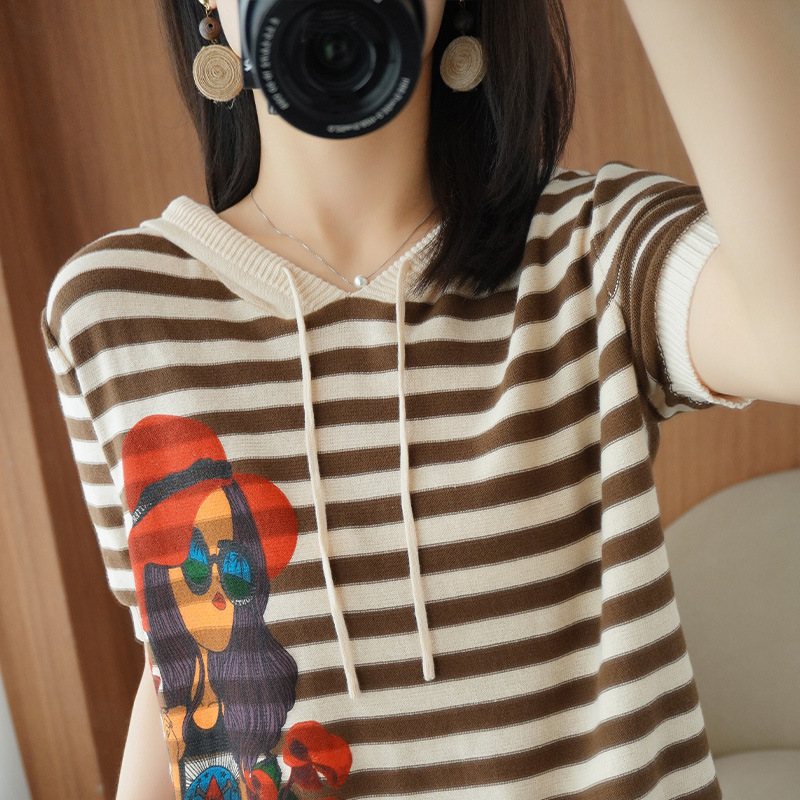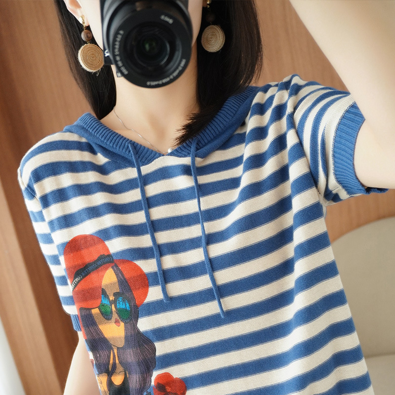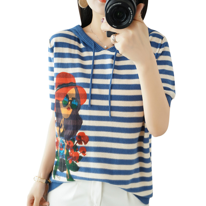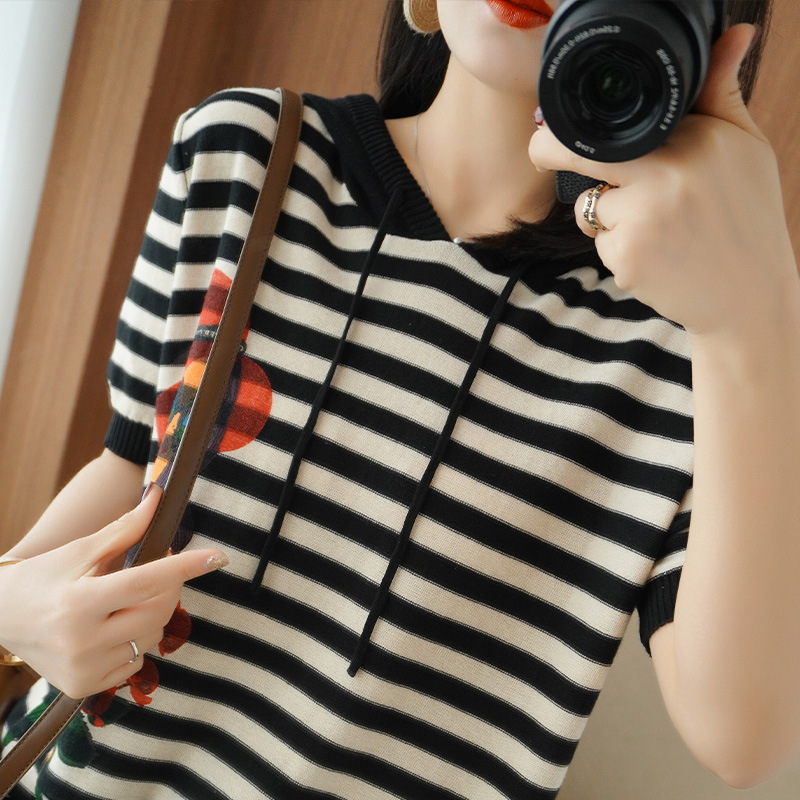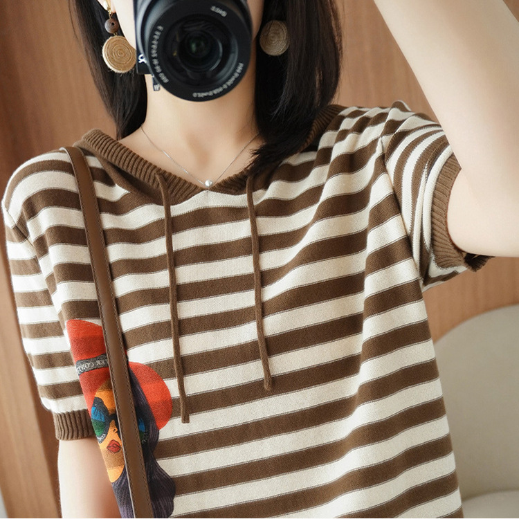 Летняя Новая повседневная хлопковая трикотажная толстовка больших размеров с короткими рукавами в полоску, уменьшающая возраст, для женской одежды среднего и пожилого возраста, оптовая продажа с фабрики