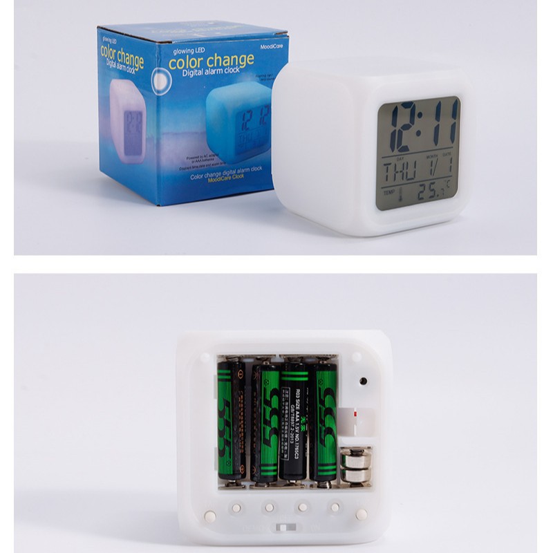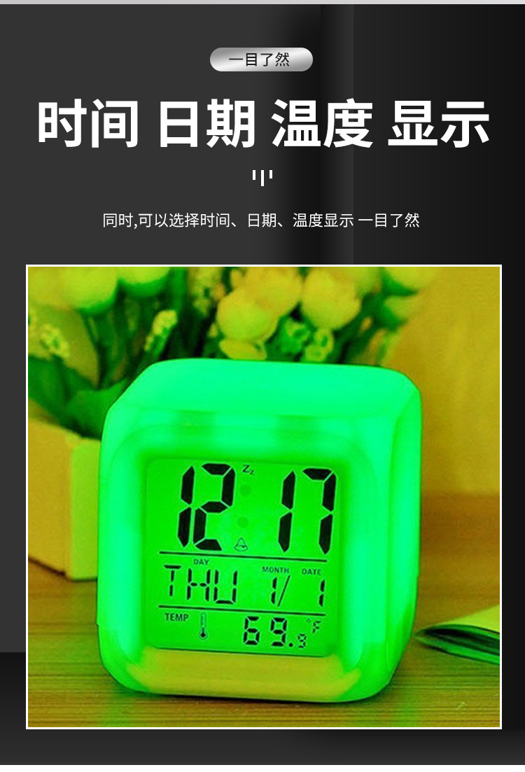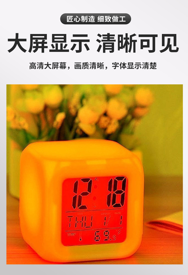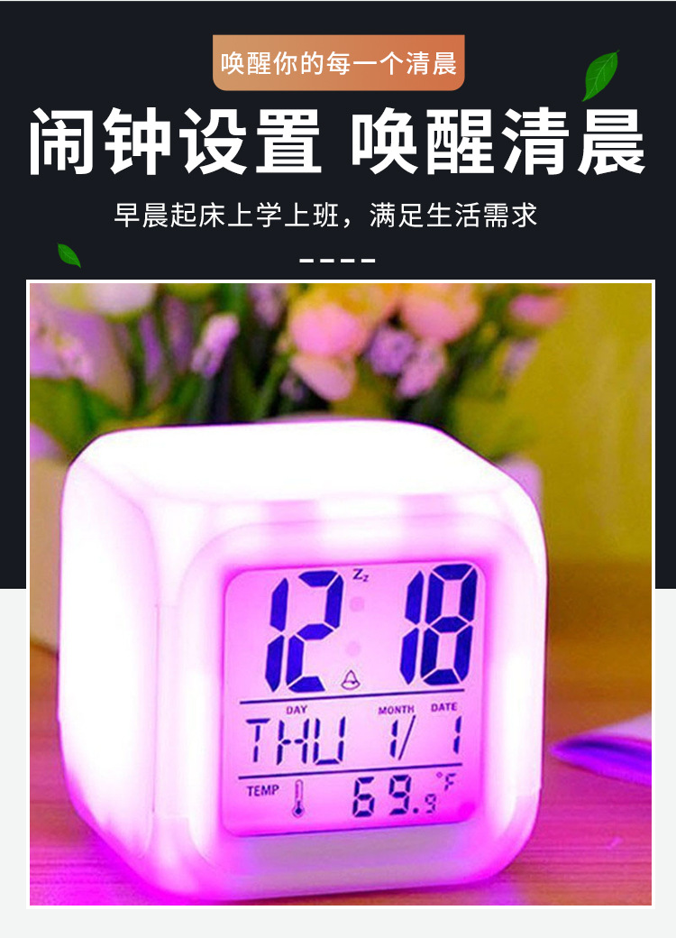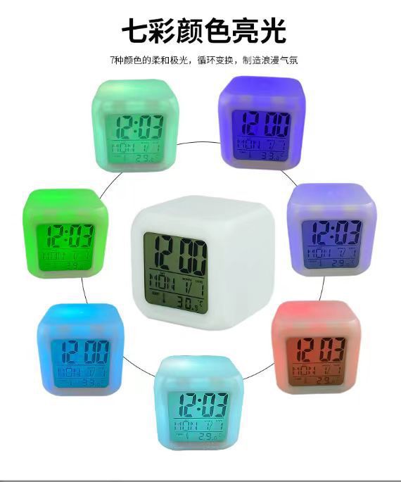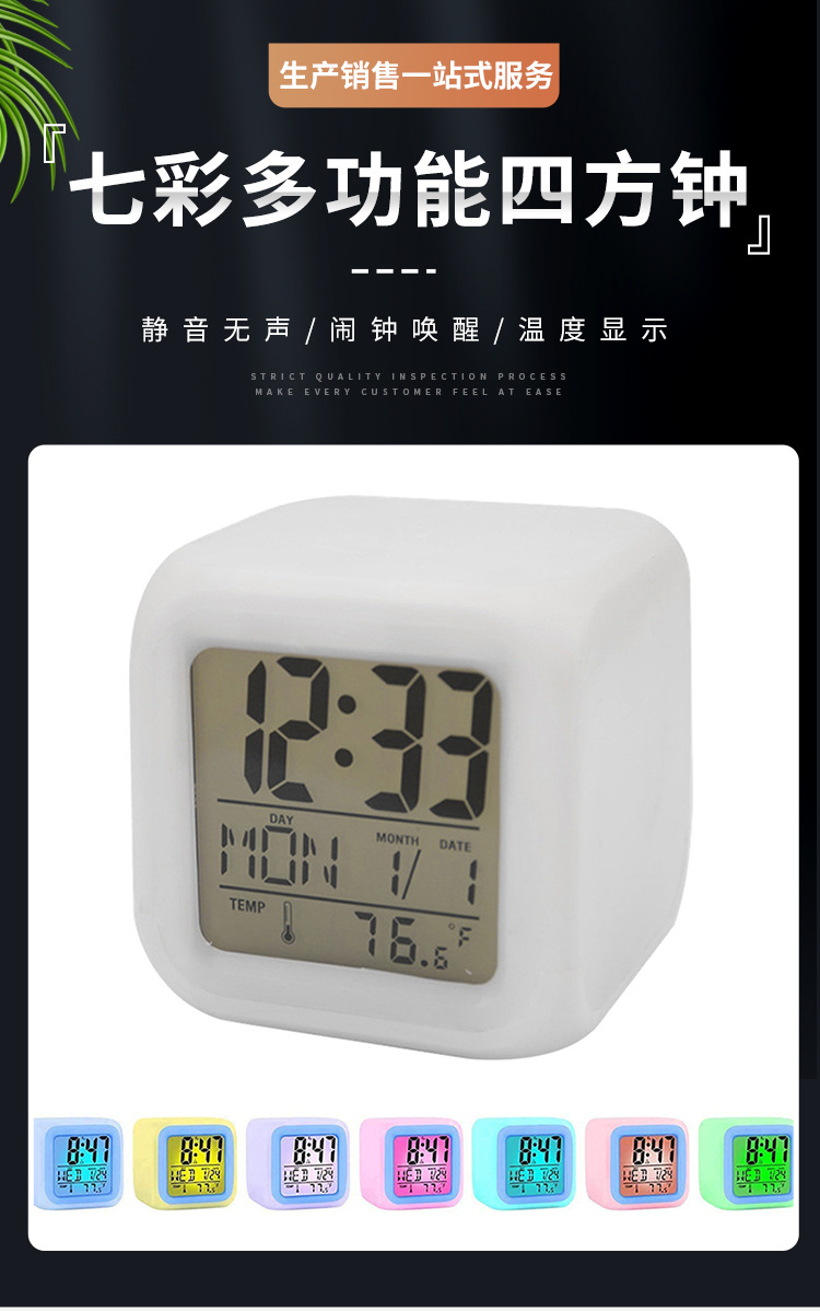Производитель поставляет многофункциональные квадратные часы с семью цветами подсветки, светодиодные светящиеся часы, детские будильники, бесшумные электронные будильники.