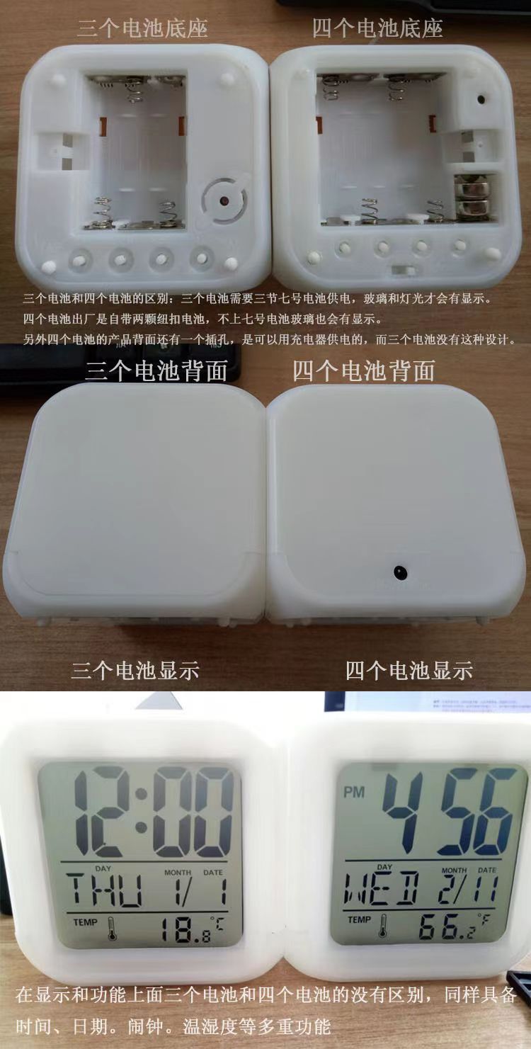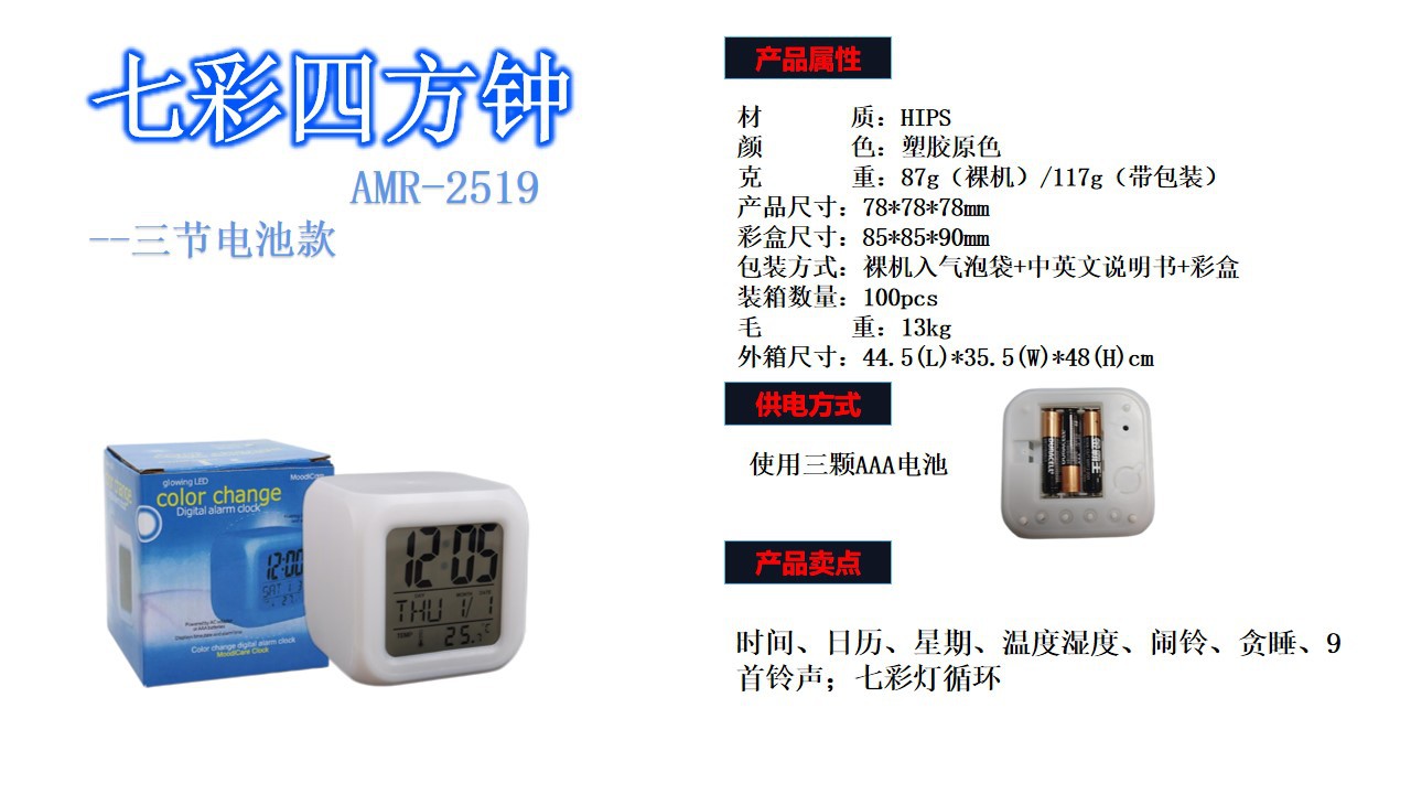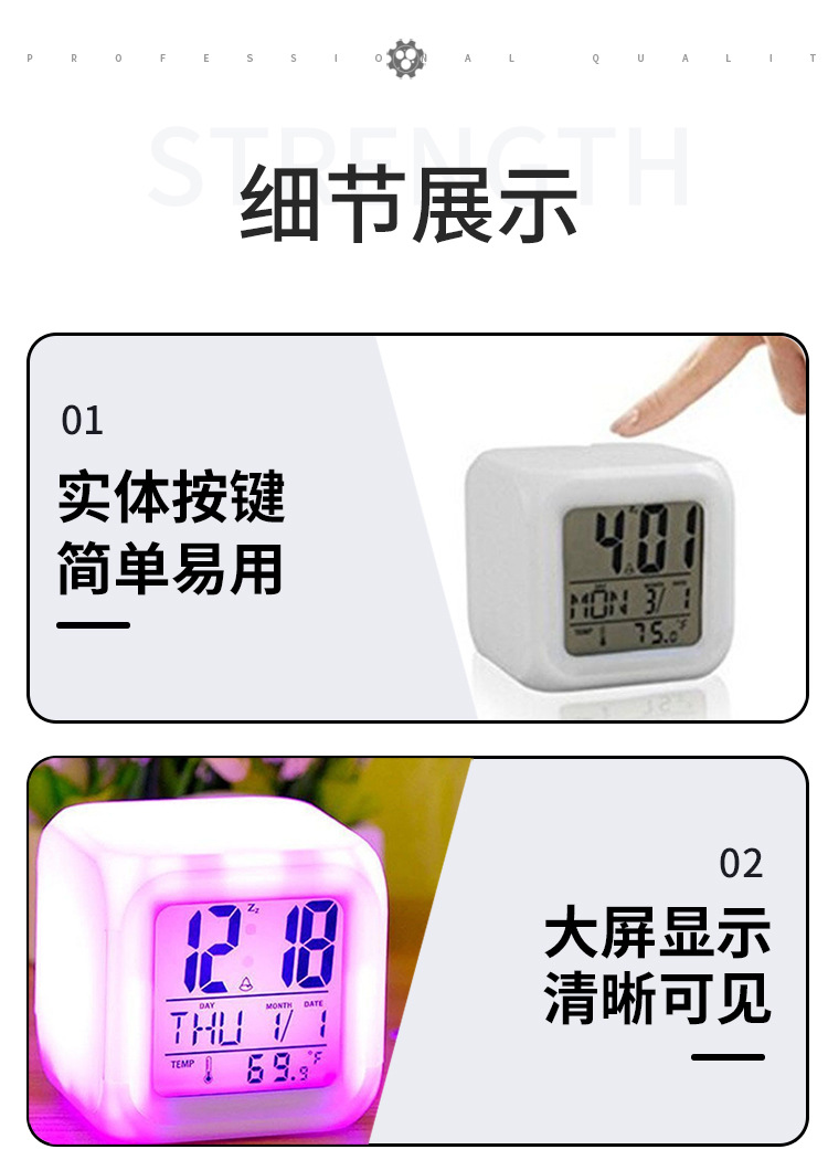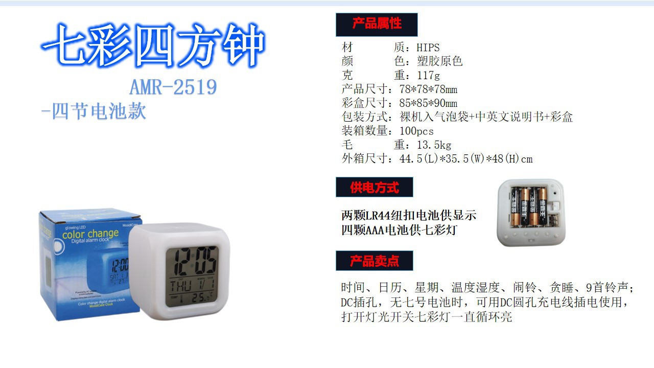 Производитель поставляет многофункциональные квадратные часы с семью цветами подсветки, светодиодные светящиеся часы, детские будильники, бесшумные электронные будильники.