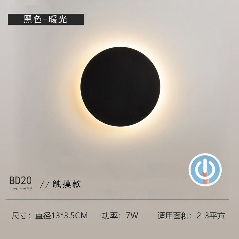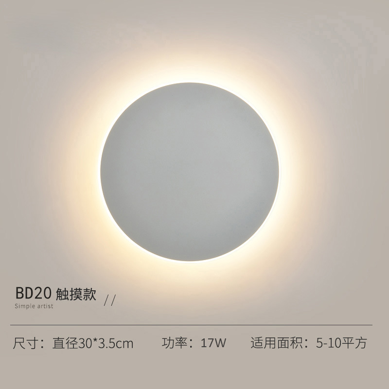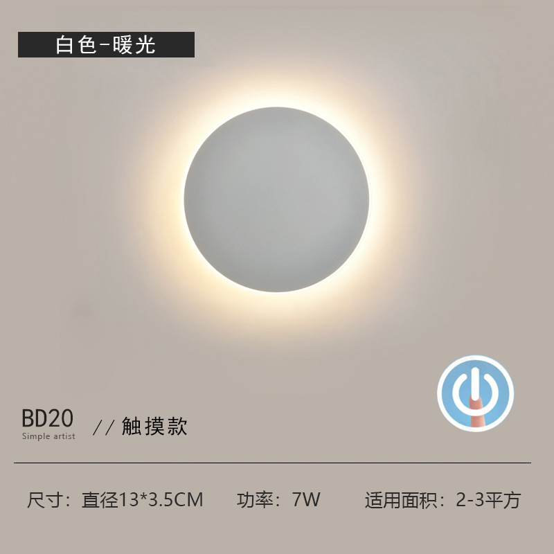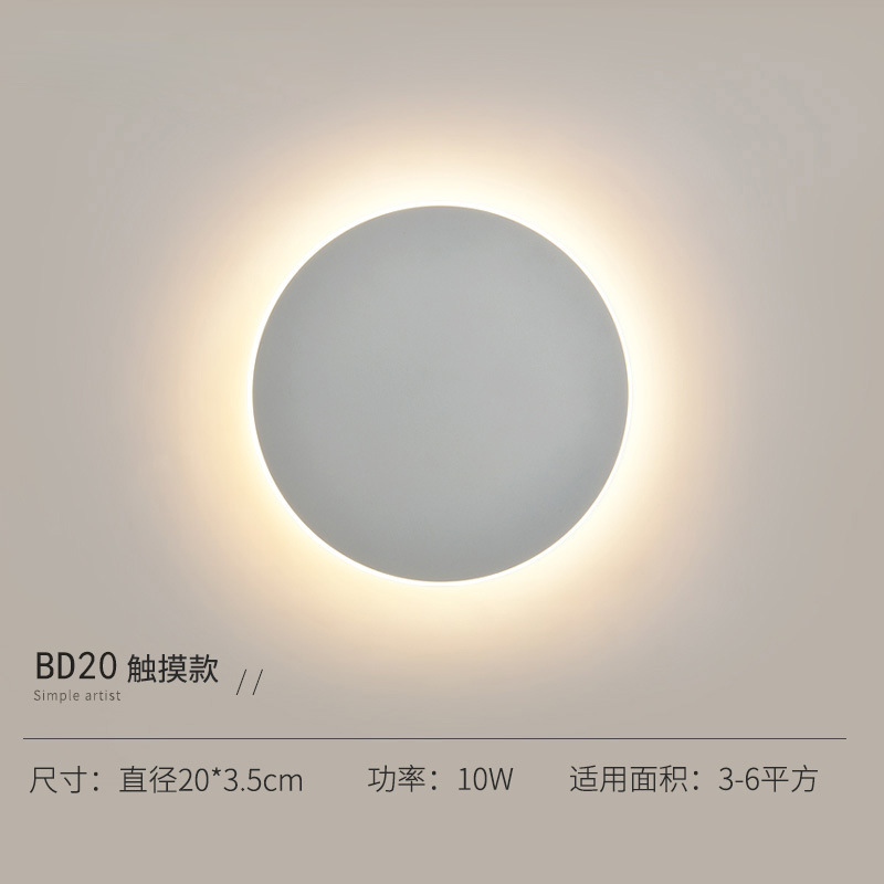 北欧创意网红触摸开关壁灯 卧室床头灯现代简约过道楼梯墙背景墙光圆形led壁灯