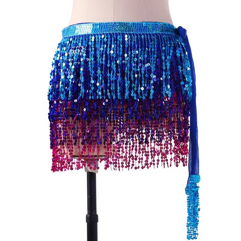 Цепочка на талию для танца живота Новая юбка-полотенце с кисточками Четырехслойный шифоновый пояс Индийский танцевальный пояс с печатью талии Настольные аксессуары для полотенец для талии