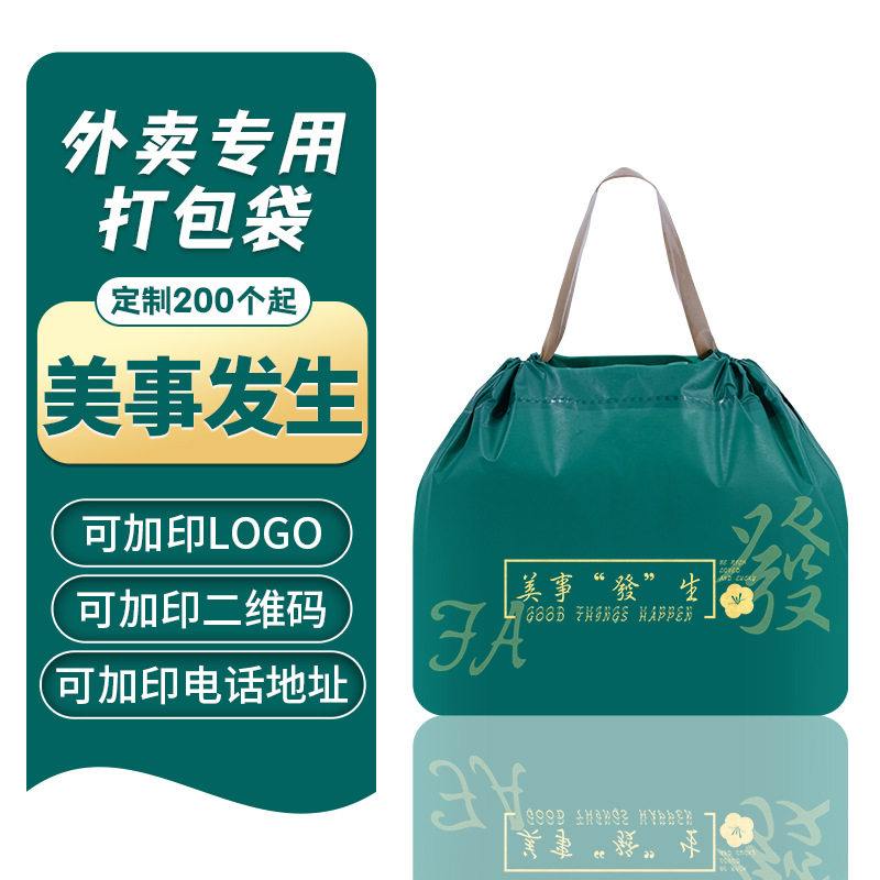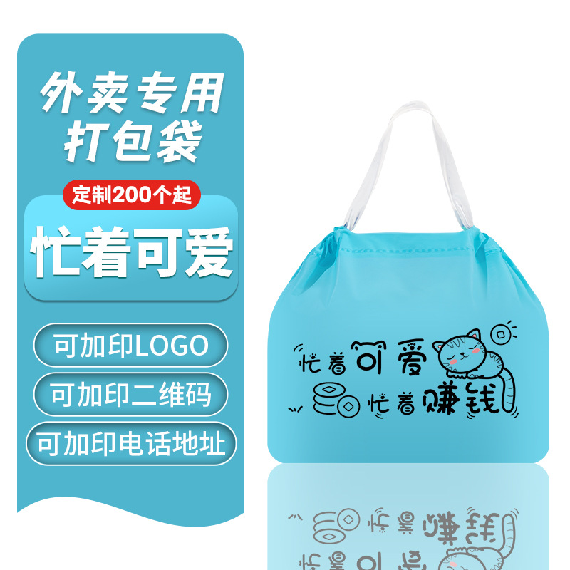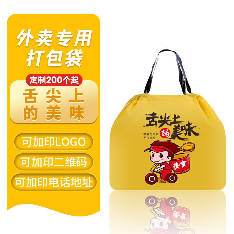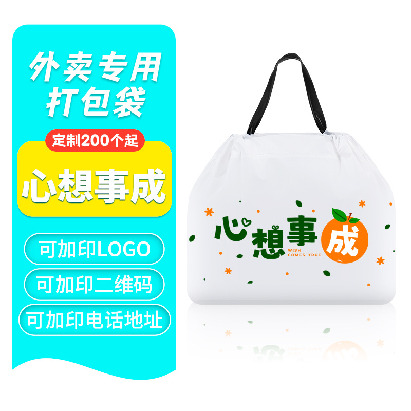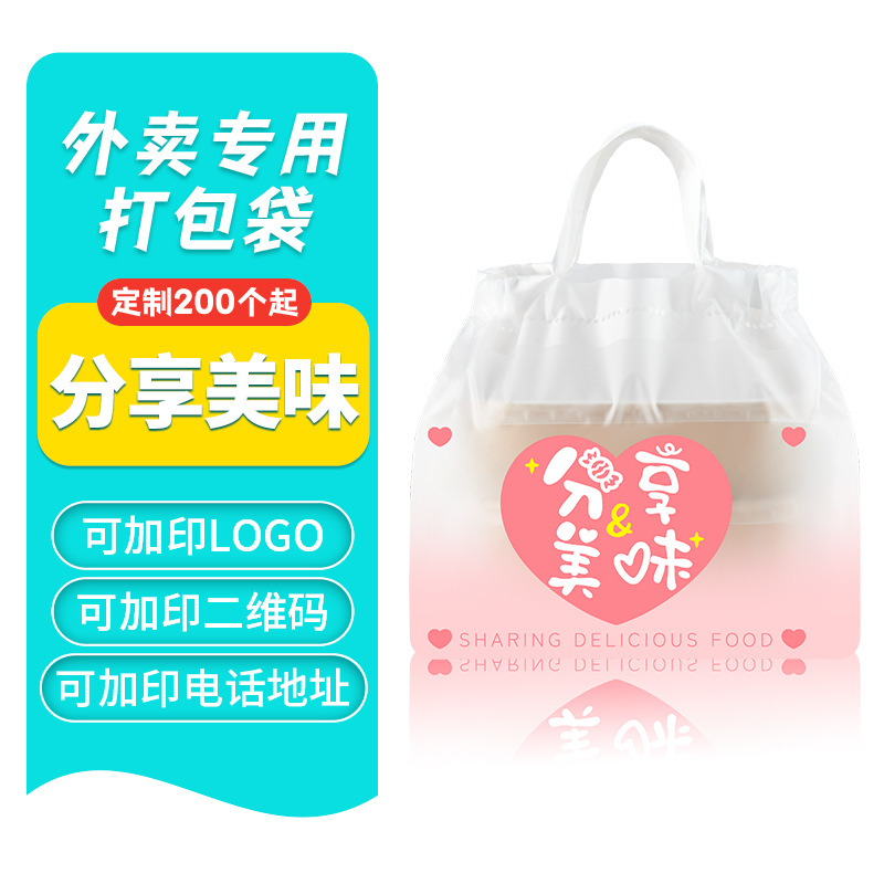 Представление на вынос, коммерческая упаковочная сумка на шнурке, упаковка для пищевых продуктов, пластиковый пакет, сумка, оптовая продажа, напечатанный на заказ логотип