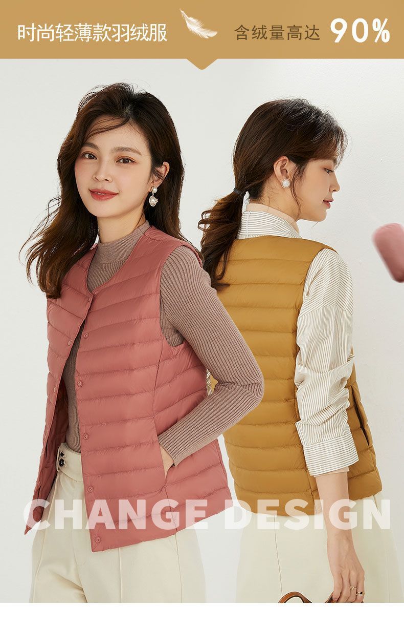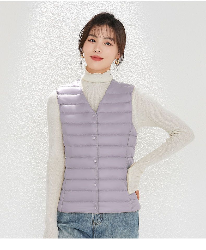 Новый женский жилет без воротника TikTok с v-образным вырезом, легкая теплая куртка, жилет с круглым вырезом