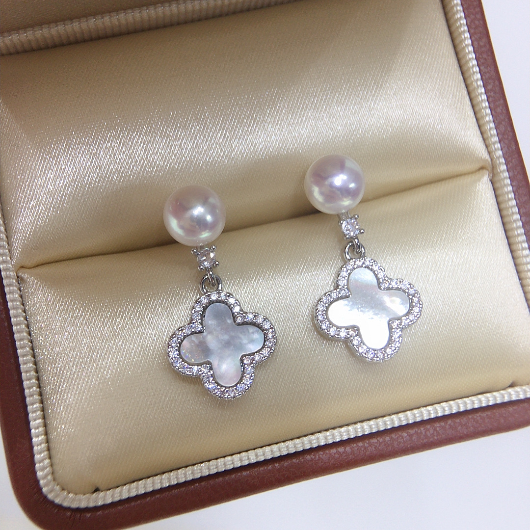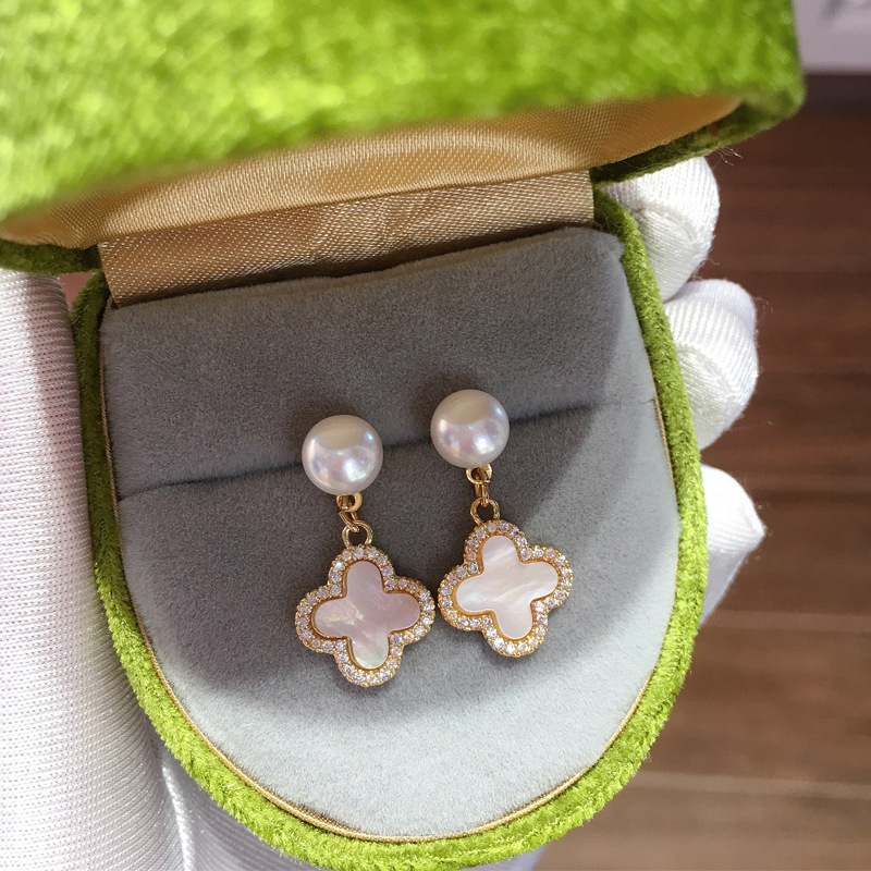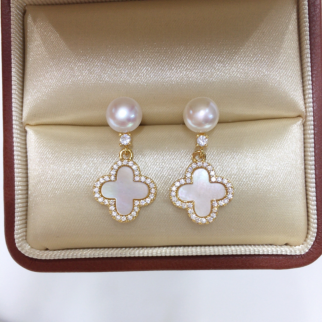 Серьги из натурального пресноводного жемчуга, женские серьги с четырьмя листьями клевера из натуральной ракушки, золото 18 карат, игла из стерлингового серебра S925, антиаллергенное