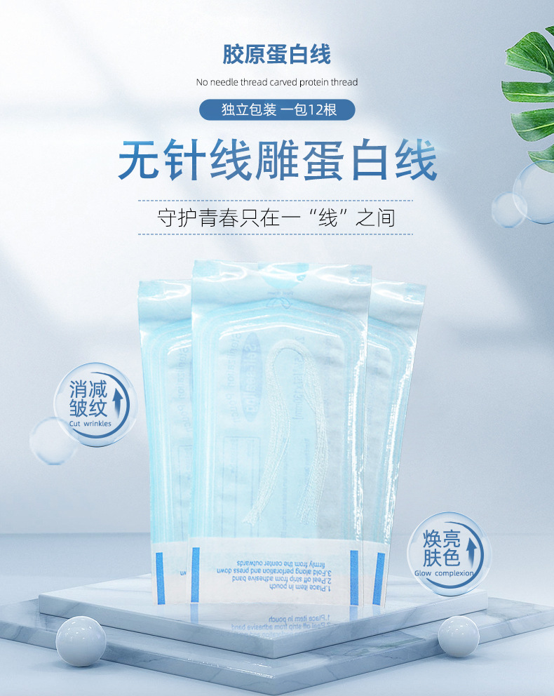Трансграничная шелковая резьба без иглы, протеиновая нить для салона красоты, оптовая мелкая линия, продукт, растворимый коллаген, золотая протеиновая нить