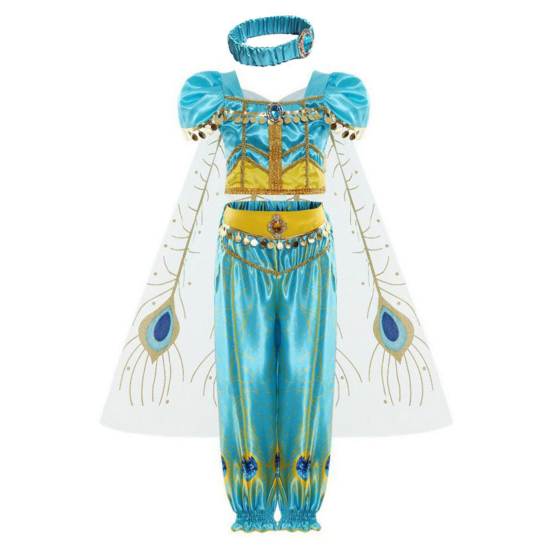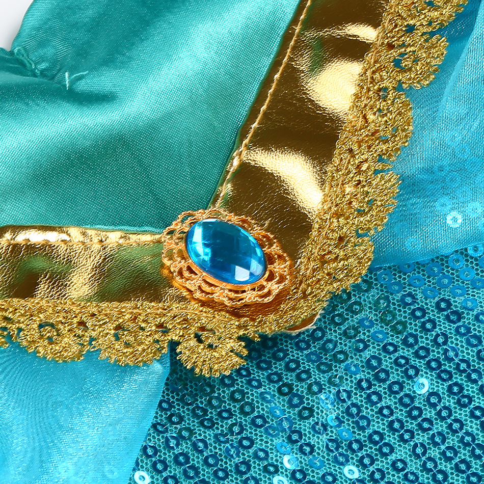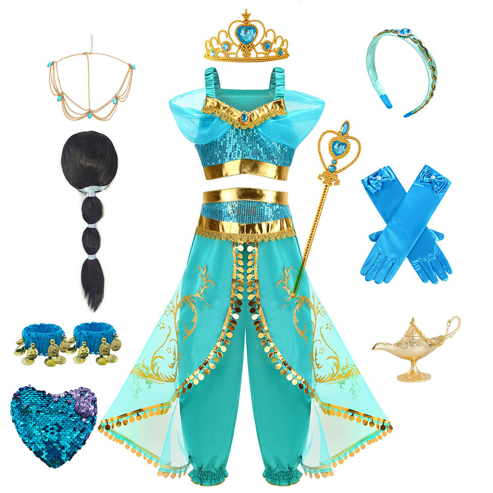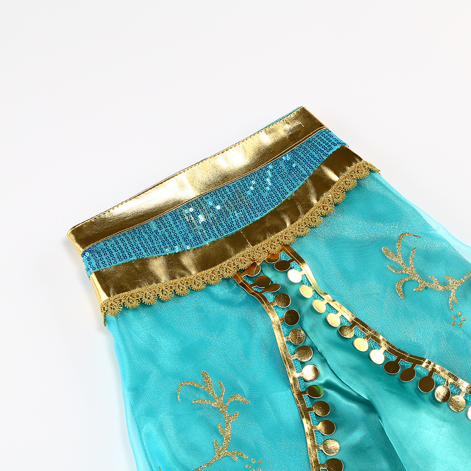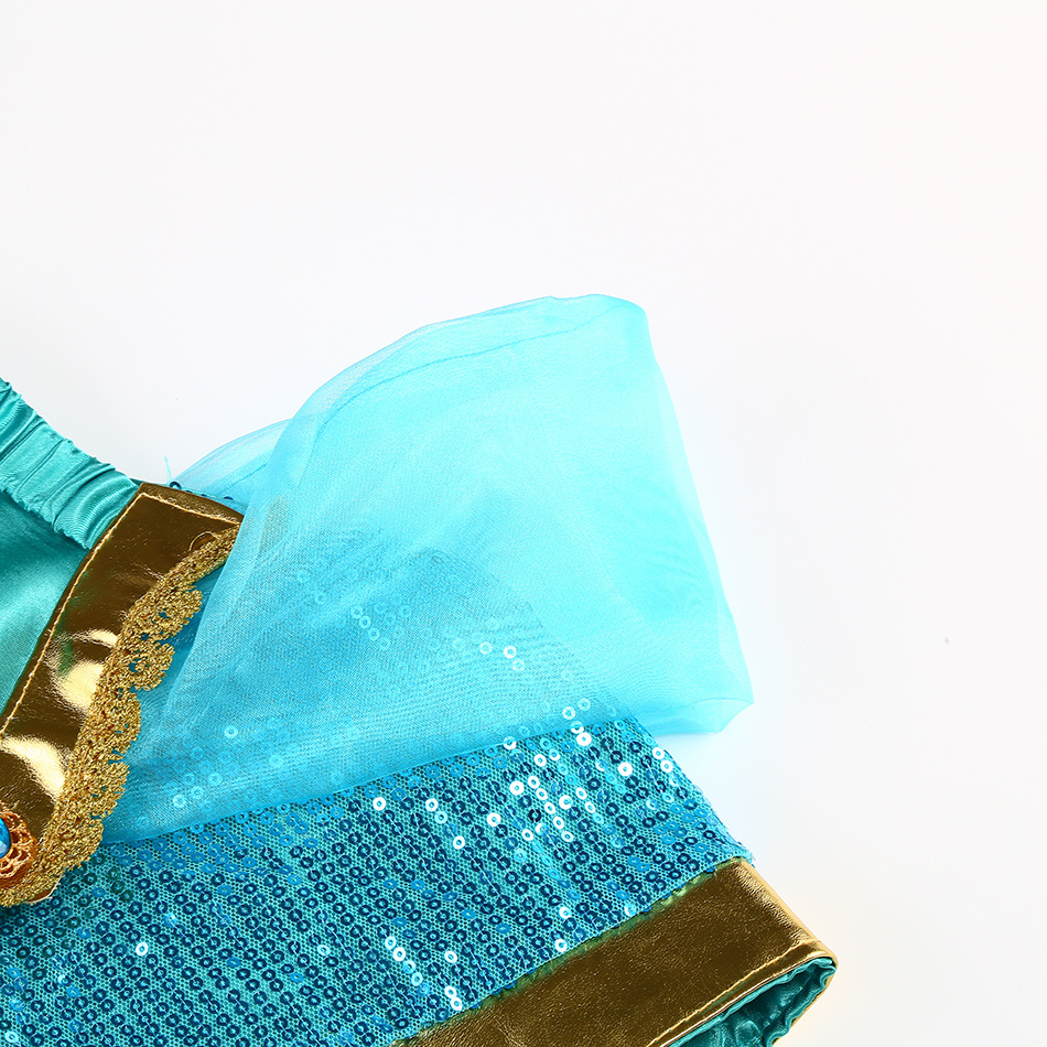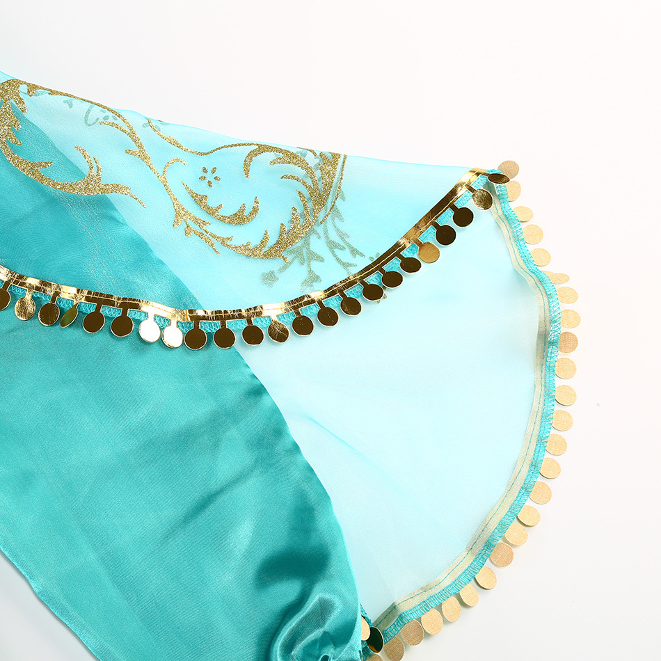 Принцесса Жасмин Классический рукава пузырь принцесса косплей костюм Рождество cos Aladdin лампа платье