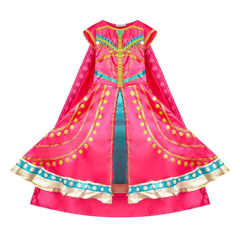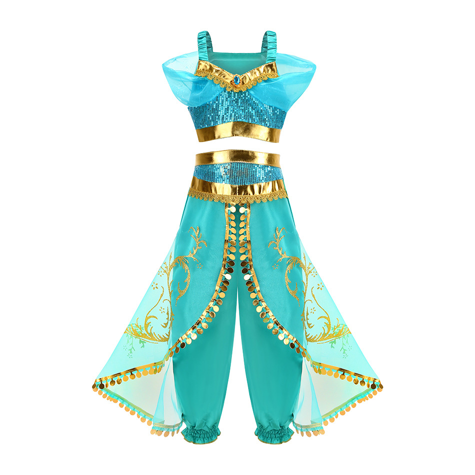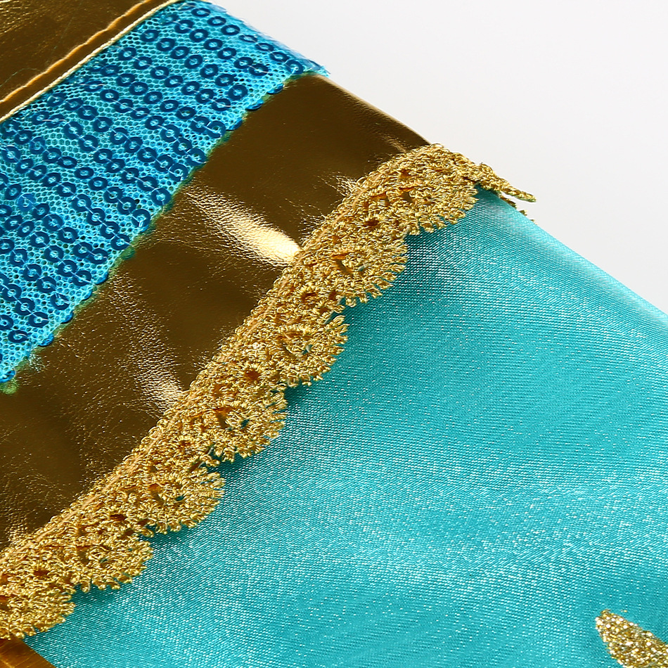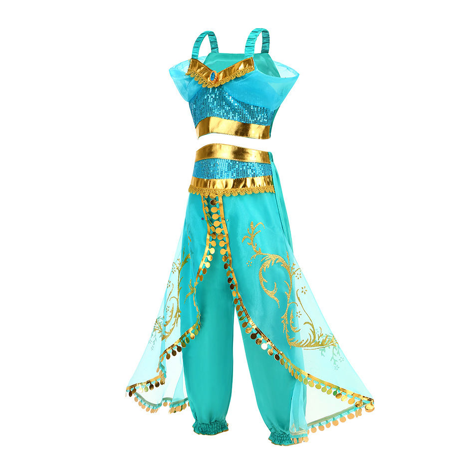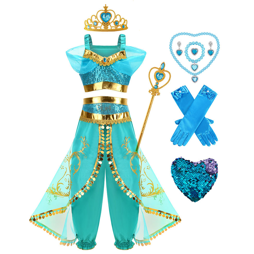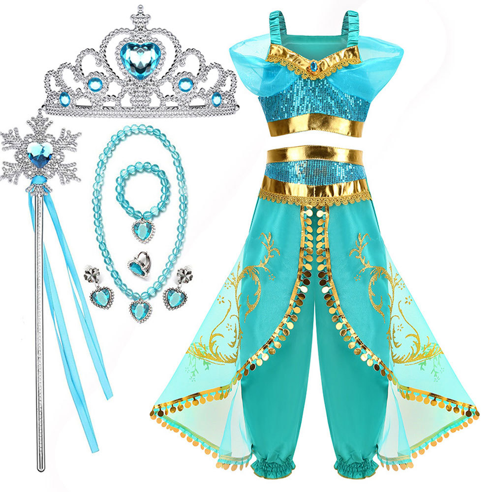 Принцесса Жасмин Классический рукава пузырь принцесса косплей костюм Рождество cos Aladdin лампа платье