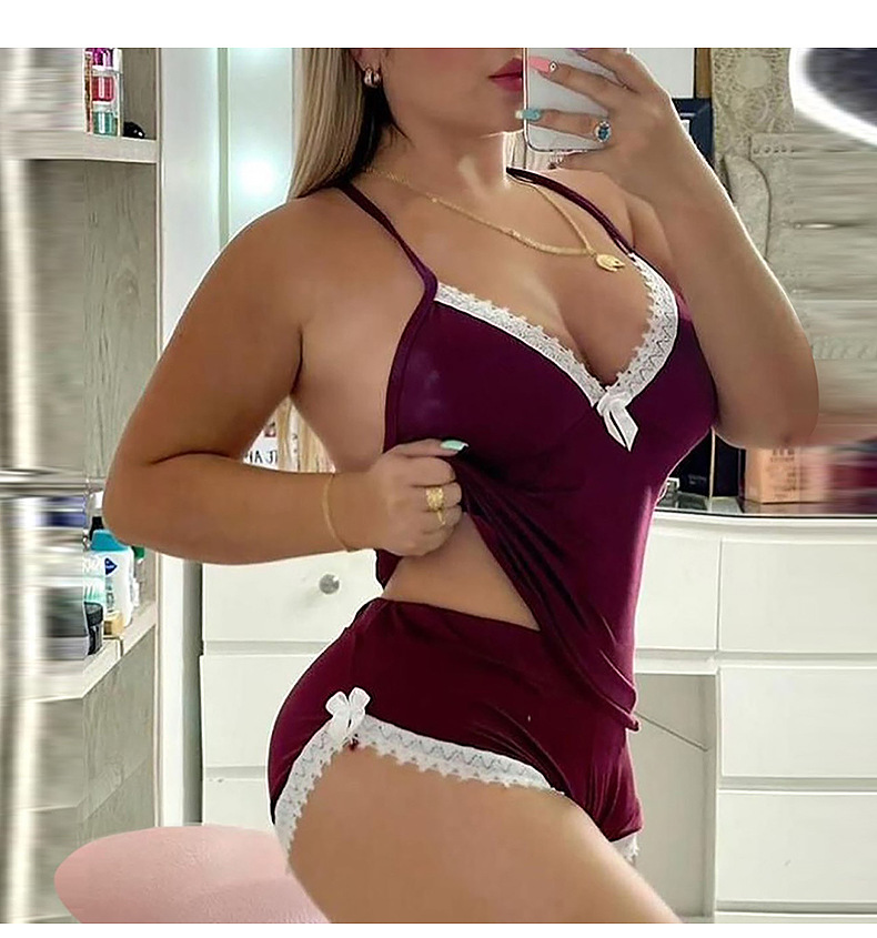 Трансграничные горячие продажи европейской и американской внешней торговли Новое сексуальное нижнее белье соблазнительный слинг с рюшами сексуальный домашний комплект из двух предметов