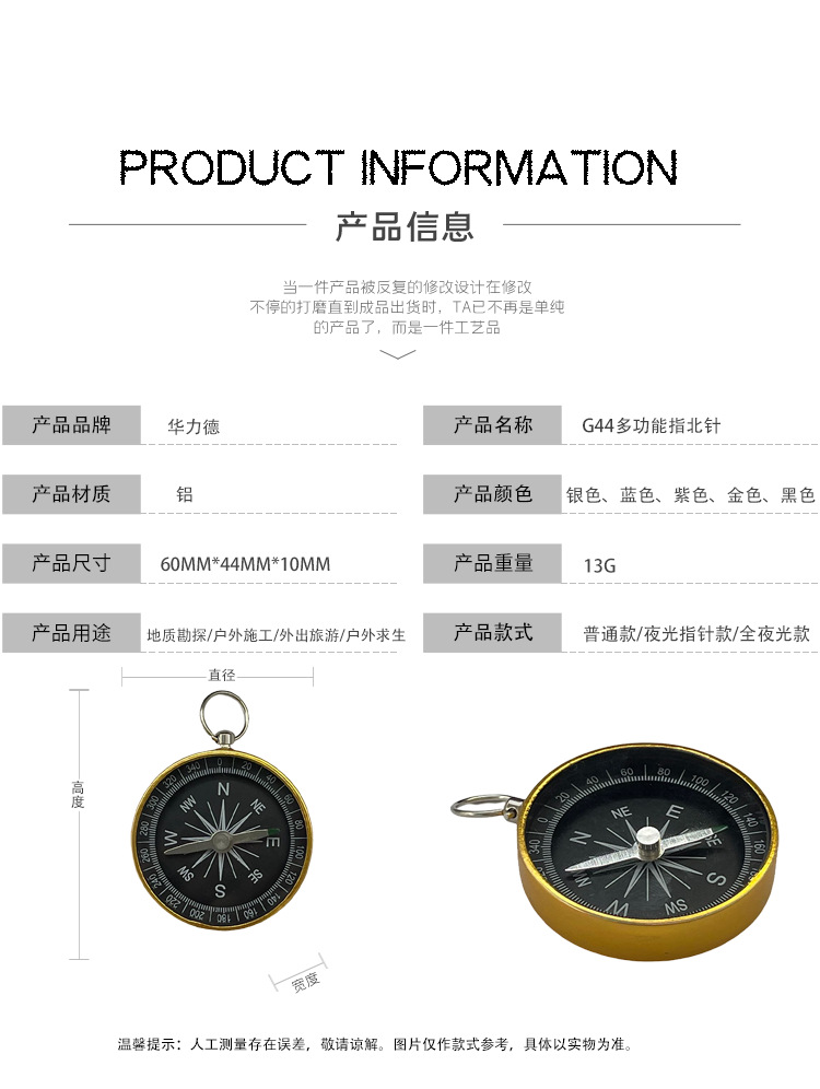 Компас Source Factory G44 с золотым алюминиевым корпусом, для использования на улице, путешествий, свадебных подарков, обучения, с лазерным логотипом и указателем севера
