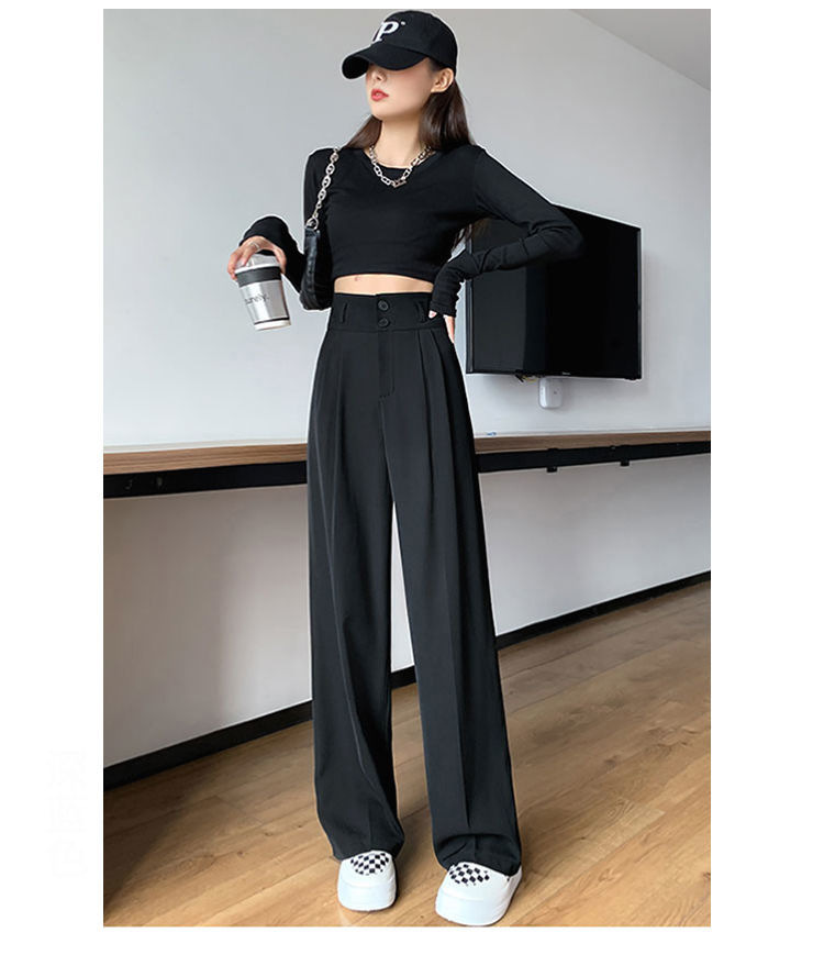 Брюки с двойными пуговицами 2022 летние новые серые Костюмные брюки с высокой талией и пуховиком тонкий костюм повседневные широкие брюки