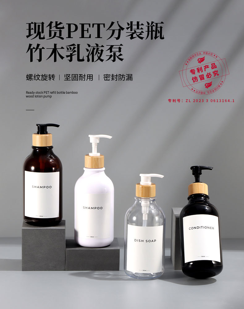 现货供应500mlPET按压圆肩塑料洗发水瓶 沐浴乳空瓶 化妆品分装瓶