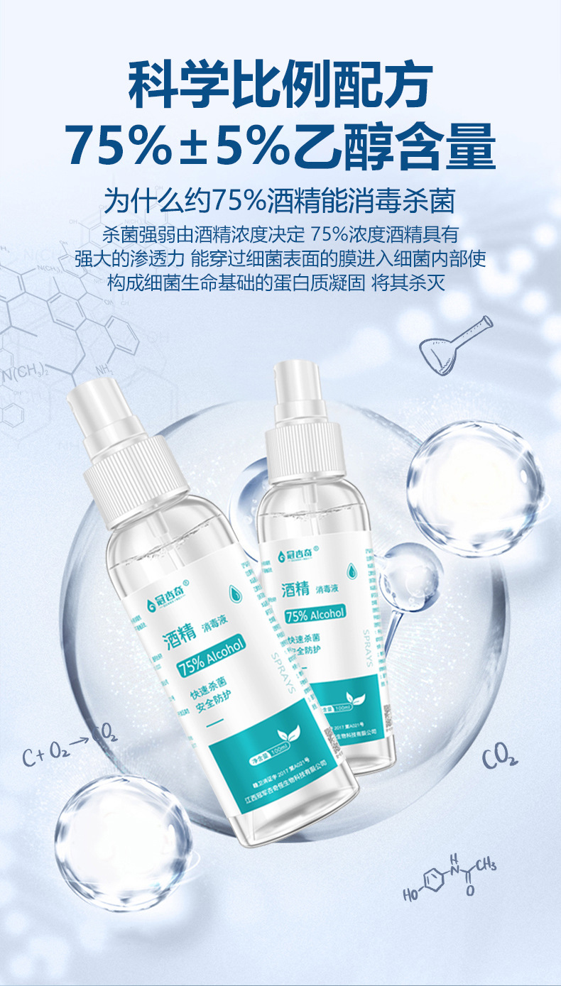 75-градусный дезинфицирующий спиртовой распылитель, 100 мл, не требующий стирки, дезинфицирующее средство для домашней одежды, стерилизация, быстросохнущее пятно, быстросъемное