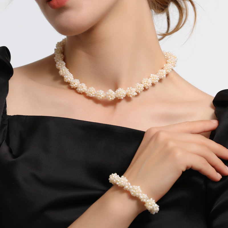 Ожерелье с цветочными шариками из натуральных пресноводных жемчужин, цепочка на ключицу, браслет в виде попкорна, серьги, роскошь ручной работы класса люкс.