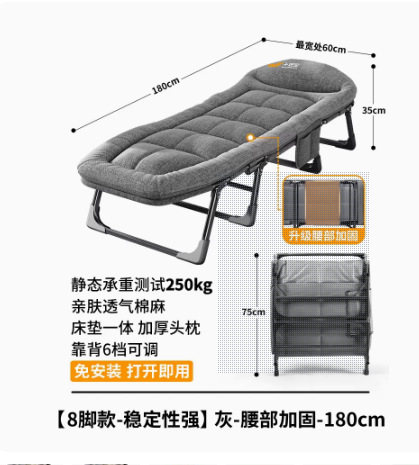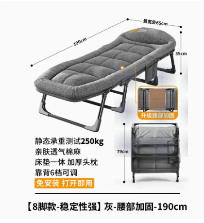 Американская раскладная кровать Односпальный офис Обеденный перерыв Кресла Маршевый дом Портативная сопутствующая кровать Nap Артефакт Регулировка кровати