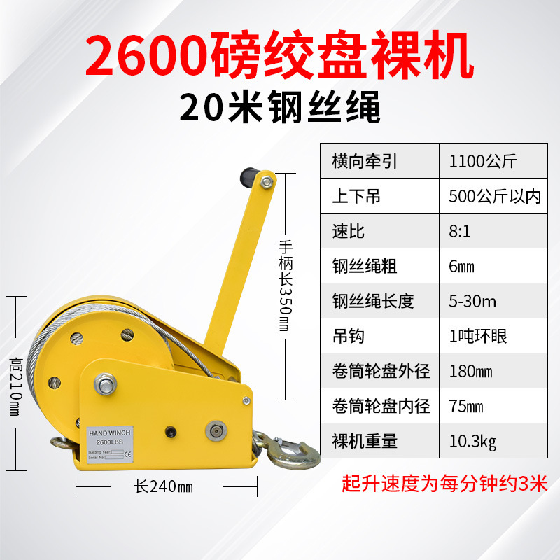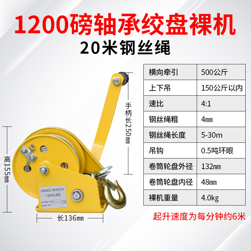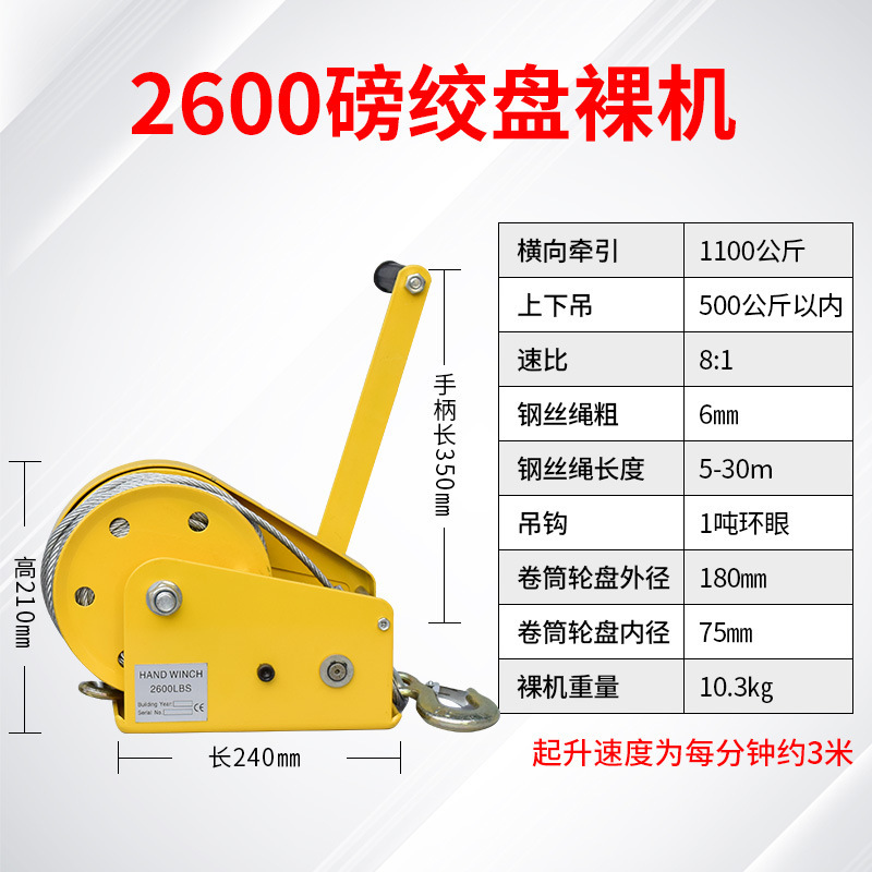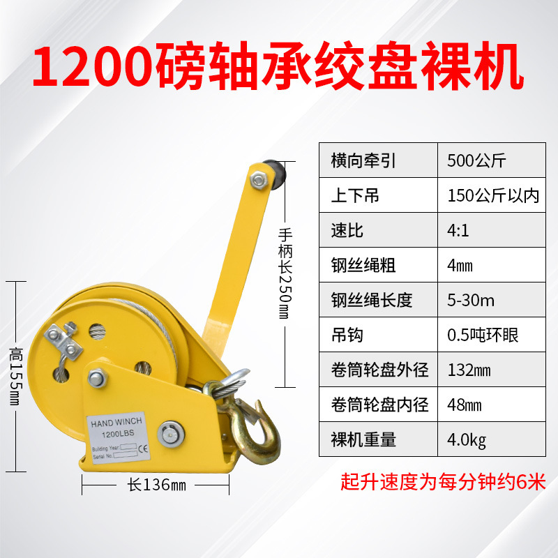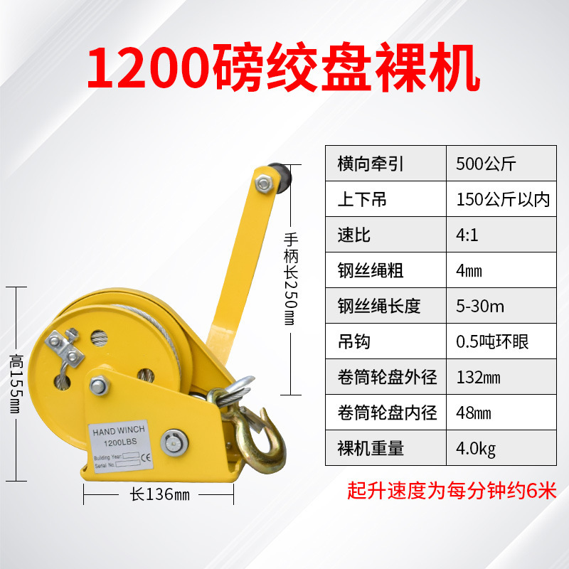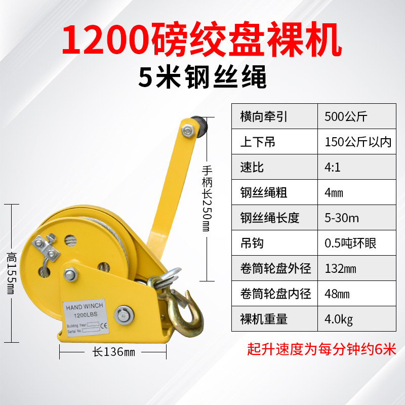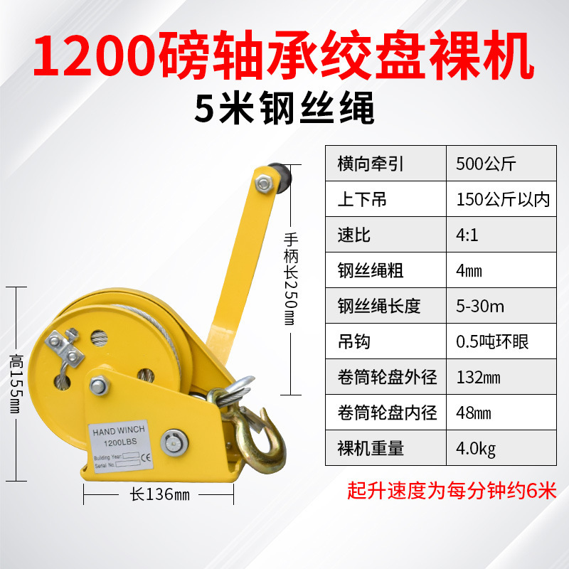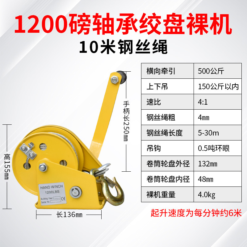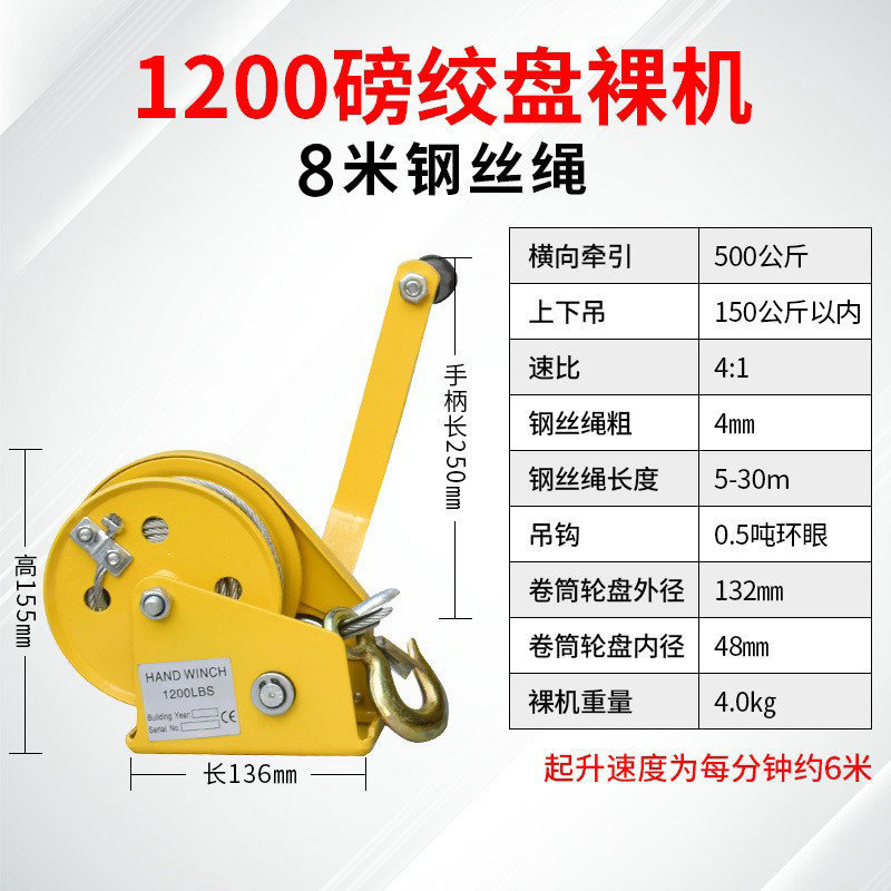 Двунаправленный самоблокируемый ручная лебедка 1200 фунтов 2600 фунтов бытовая тяговая лебедка портативный стальной трос ручная лебедка