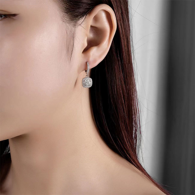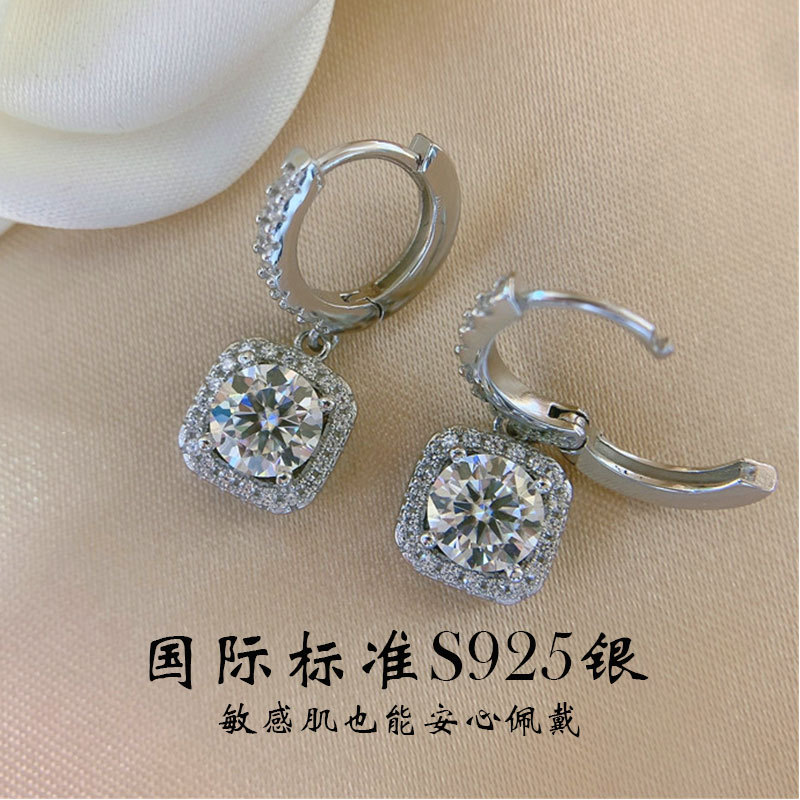 S925 стерлингового серебра роскошная квадратная сумка из сережек из Мозамбика нишевая нишевая конструкция не аллергическая, не выцветает