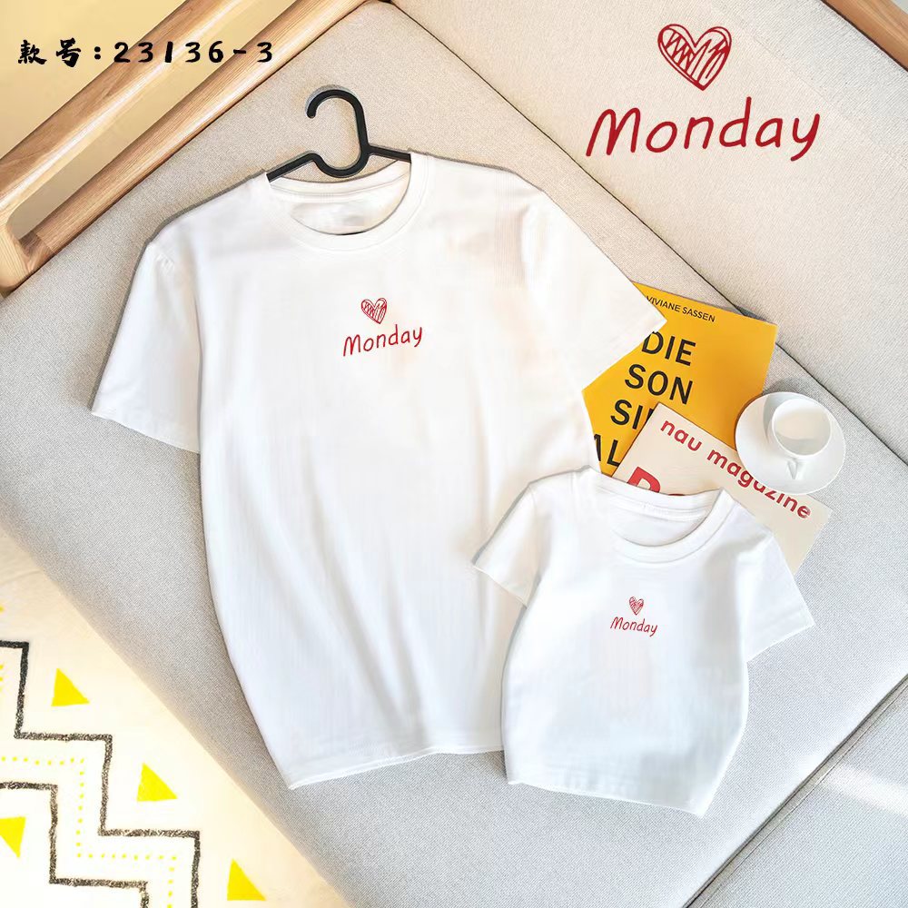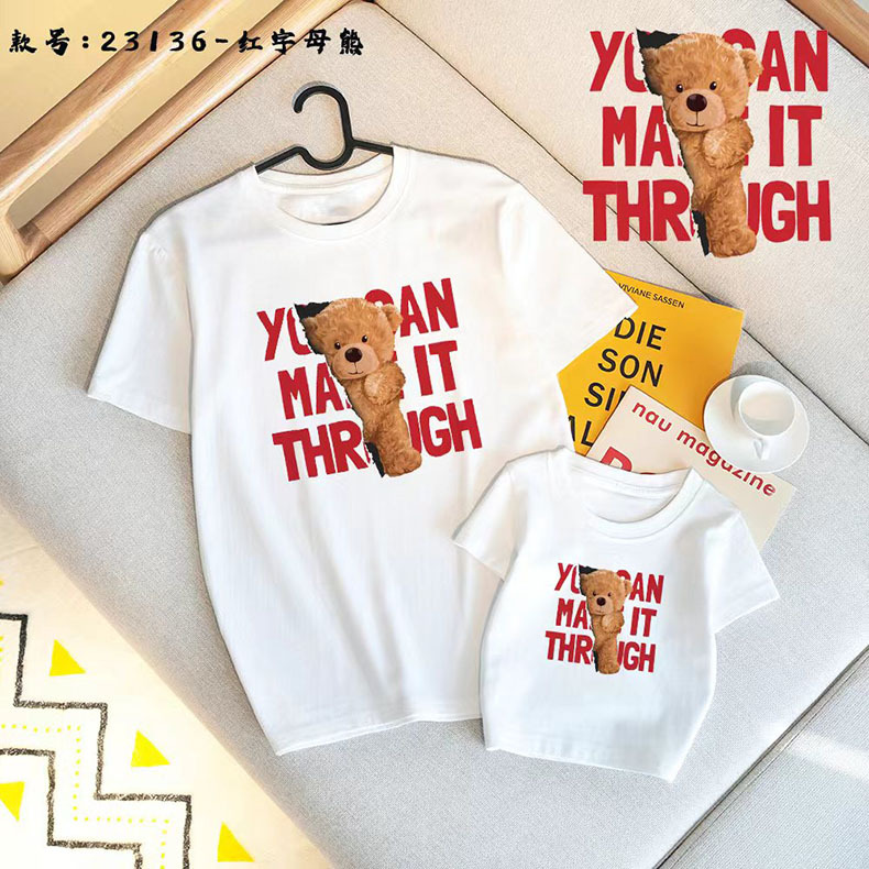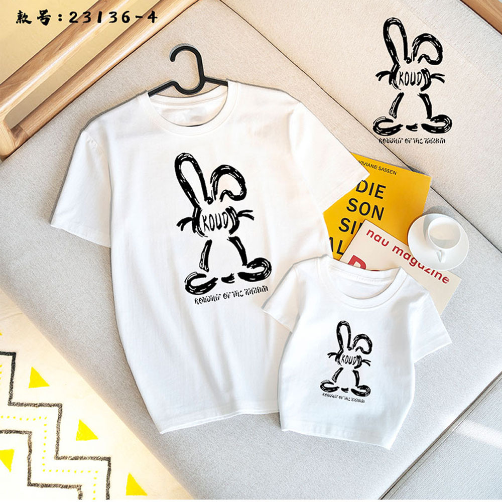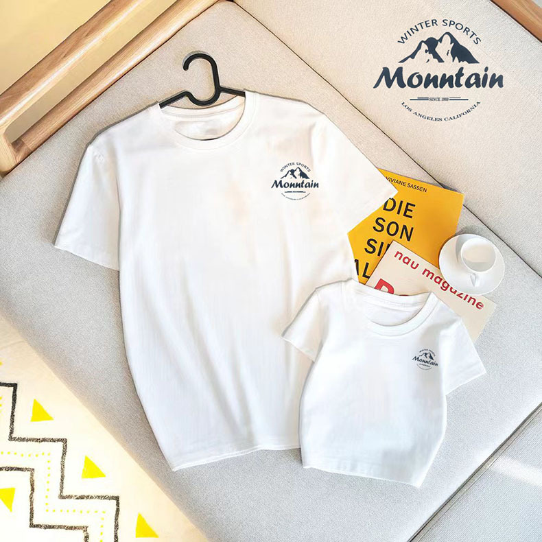 Футболка для родителей и детей 2024 Летняя новая футболка из чесаного хлопка Модная свободная семейная одежда с коротким рукавом для мужчин и женщин