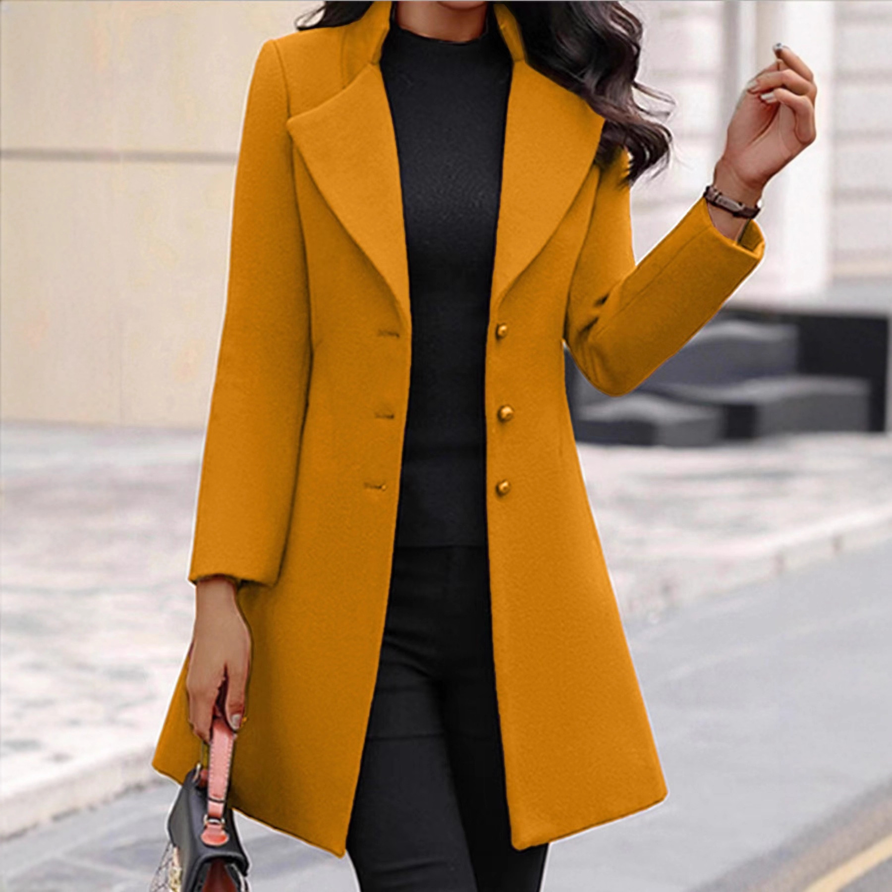 Европейско-американское осенне-зимнее шерстяное пальто с отложным воротником, приталенное, однотонное, средней длины, с длинными рукавами, в европейско-американском стиле.