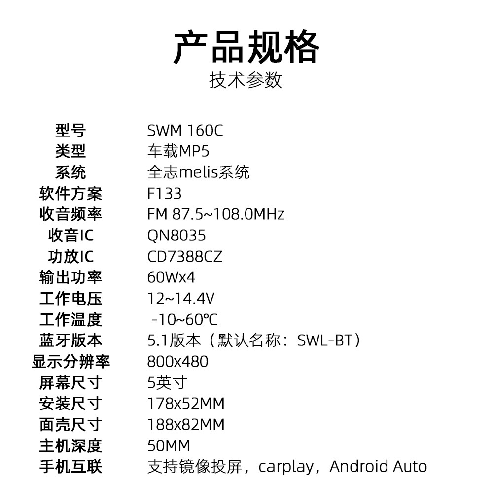 SWM 160C (проводной CarPlay + проводной Android Auto); SWM 160W (беспроводной CarPlay + беспроводной Android Auto)