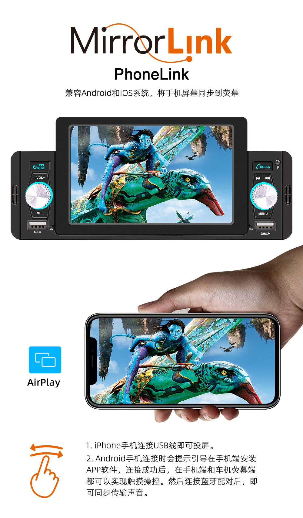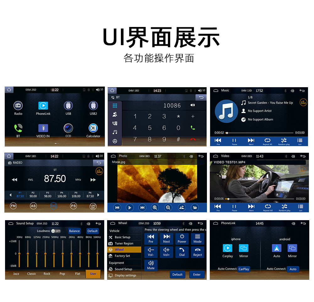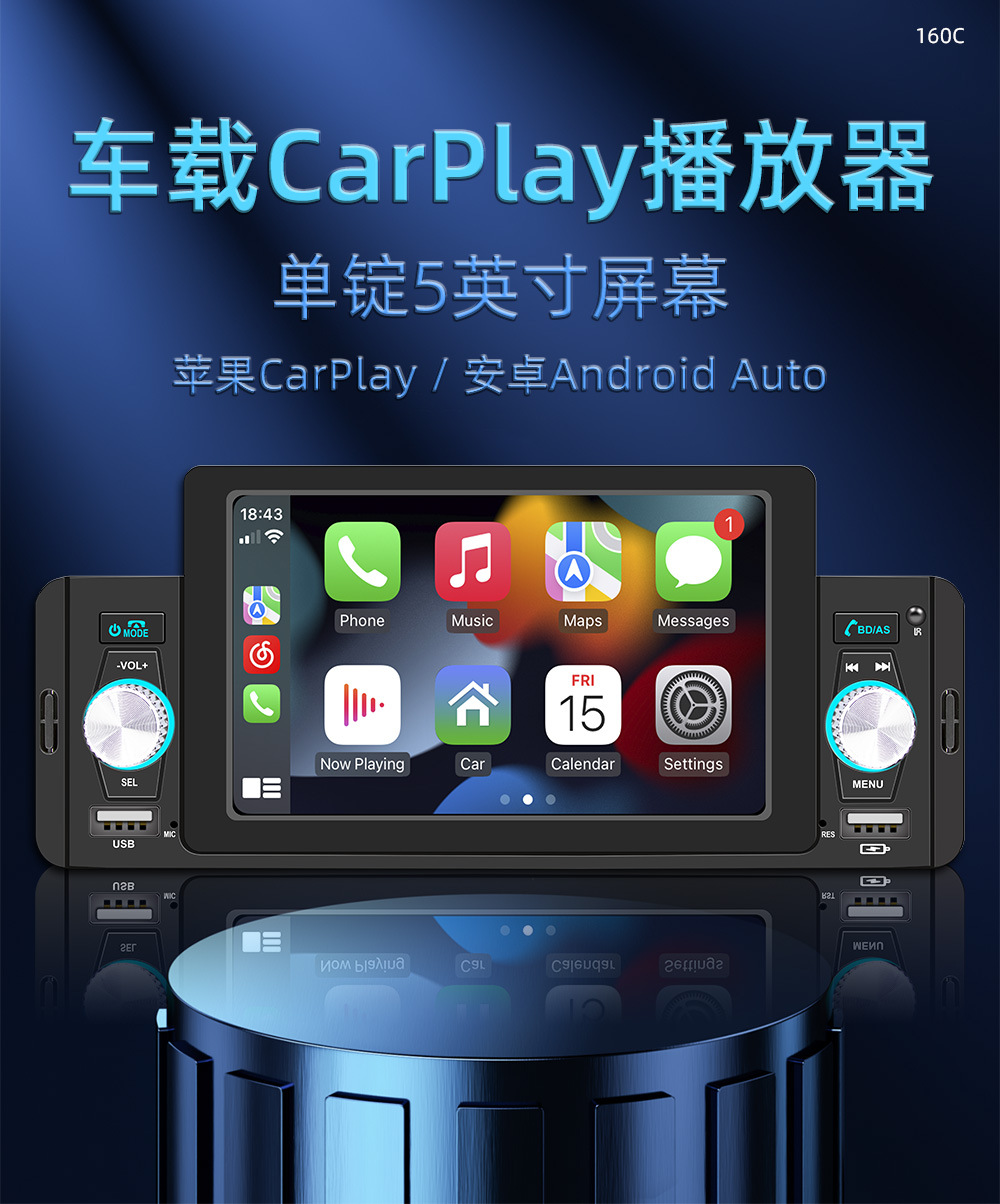 5-дюймовый автомобильный MP5-плеер Bluetooth с реверсивным изображением автомобильный MP4 радио проводной/беспроводной CarPlay