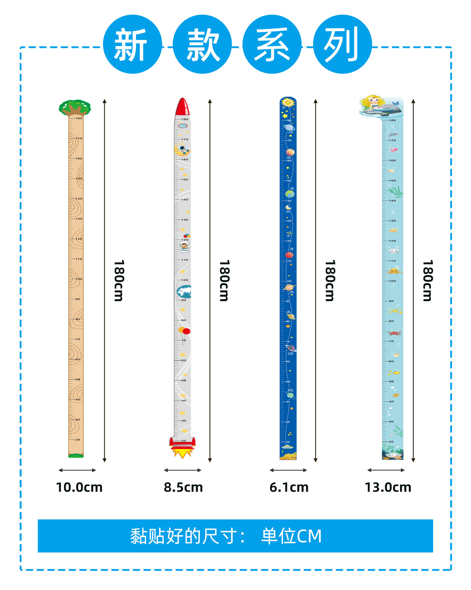 Наклейка высоты жирафа; Наклейка на высоту единорога; Наклейка высоты динозавра; Наклейка на высоту маленького дерева; наклейка высоты ракета; Наклейка на солнечную высоту; Наклейка на высоту русалки