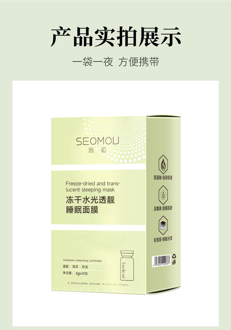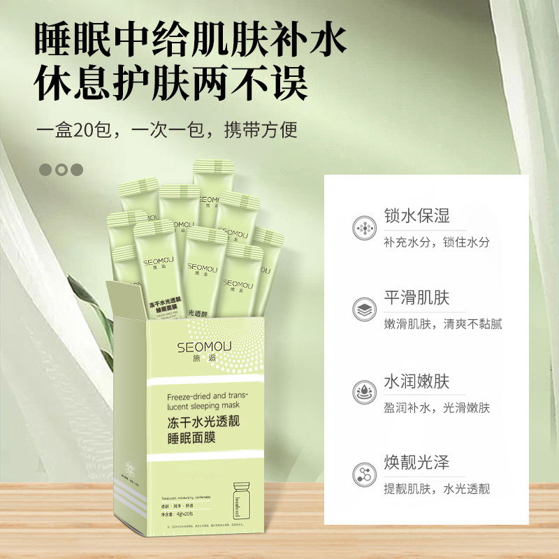 SEOMOU Маска для сна лиофилизированный порошок водяной свет прозрачный увлажняющий увлажняющий спокойной ночи замороженная пленка одноразовая оптовая продажа