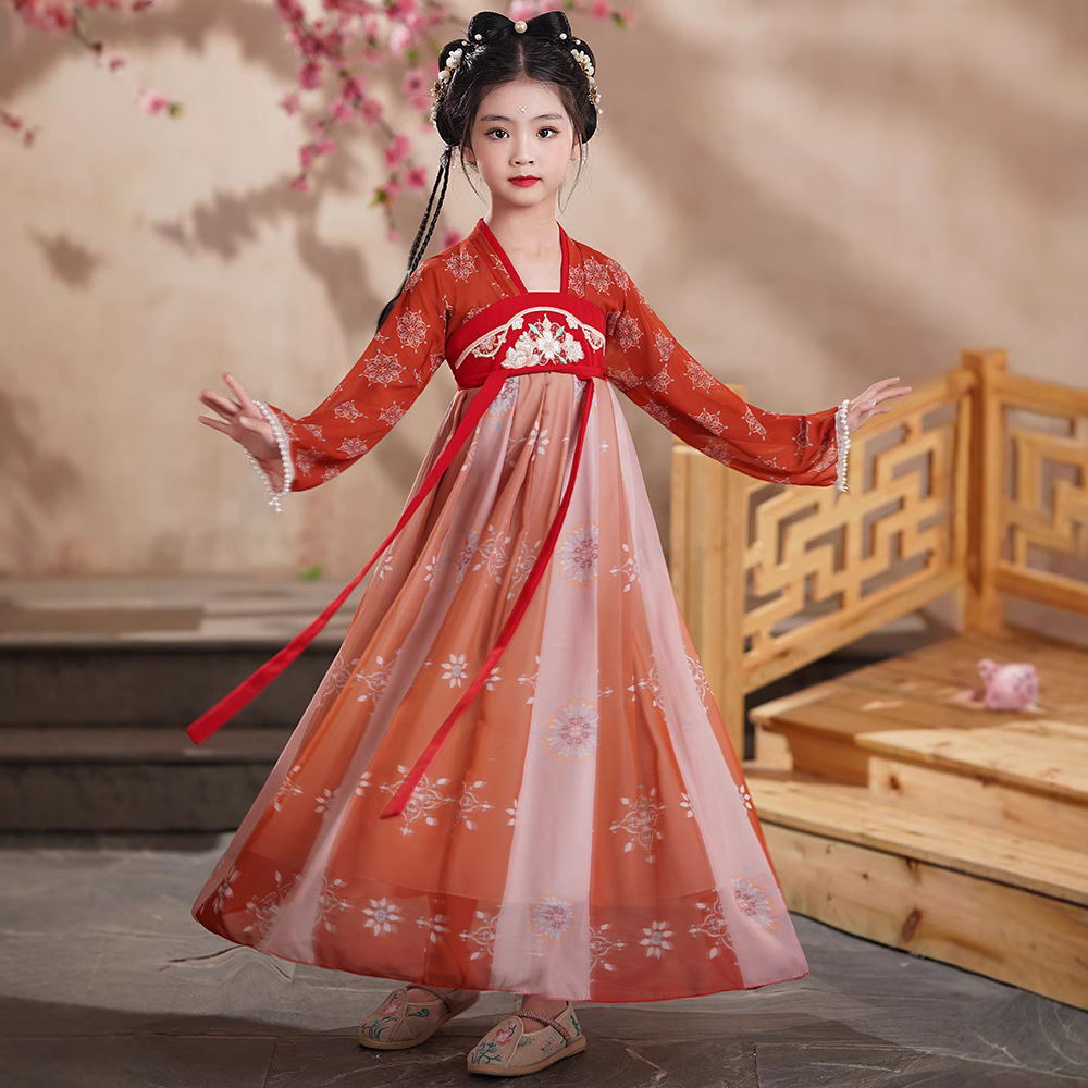 Девушки Ханфу Лето 2025 Новый древний стиль супер фея Детское платье в костюме Принцесса юбка Классический танцевальный костюм