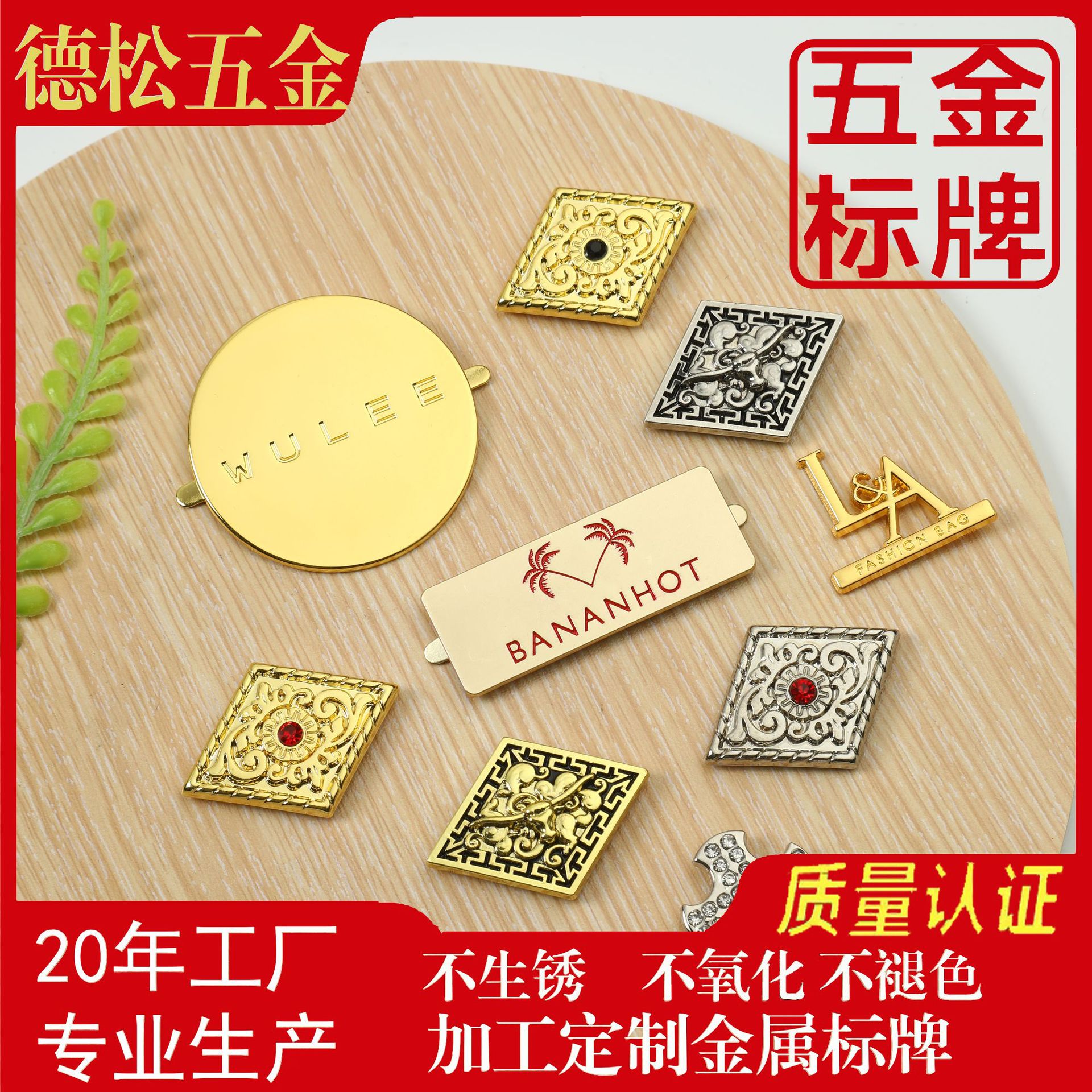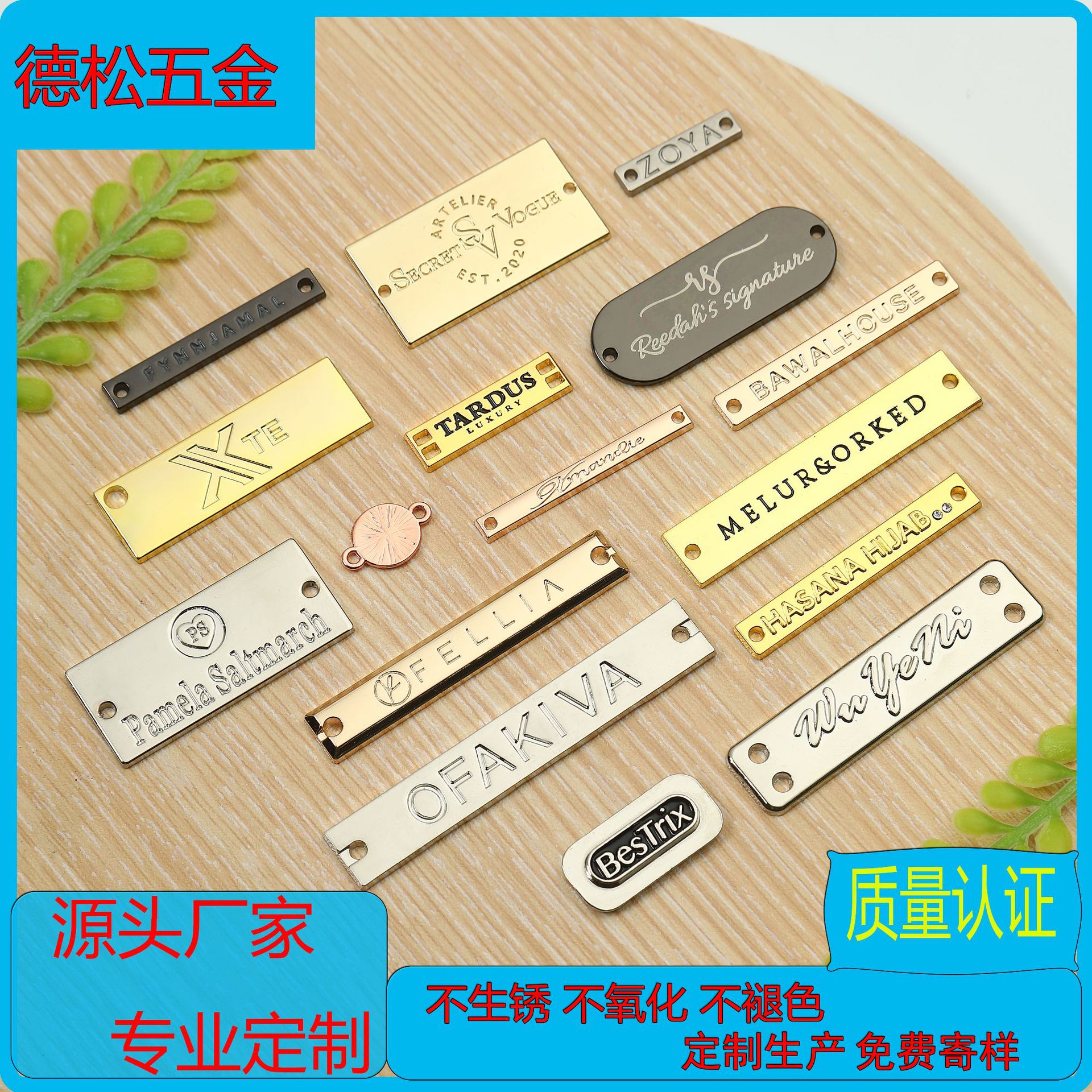 长方形标牌缝线点漆拉丝金属铭牌 电镀合金装饰围巾logo五金标牌