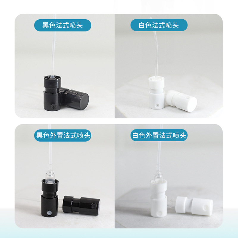 Черная французская насадка; Белая французская насадка; Белая насадка, черный внешний насос, распылительная головка во французском стиле.; Черная насадка с черным внешним насосом, распыление во французском стиле.; Белый внешний насос с имитацией французского сопла