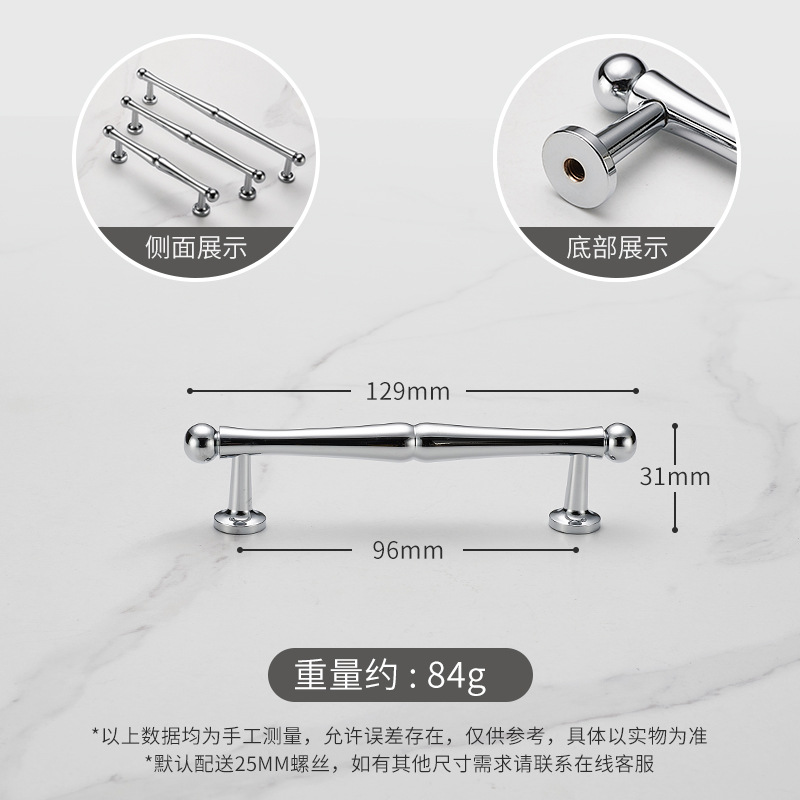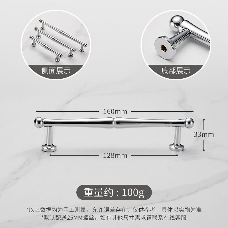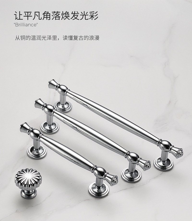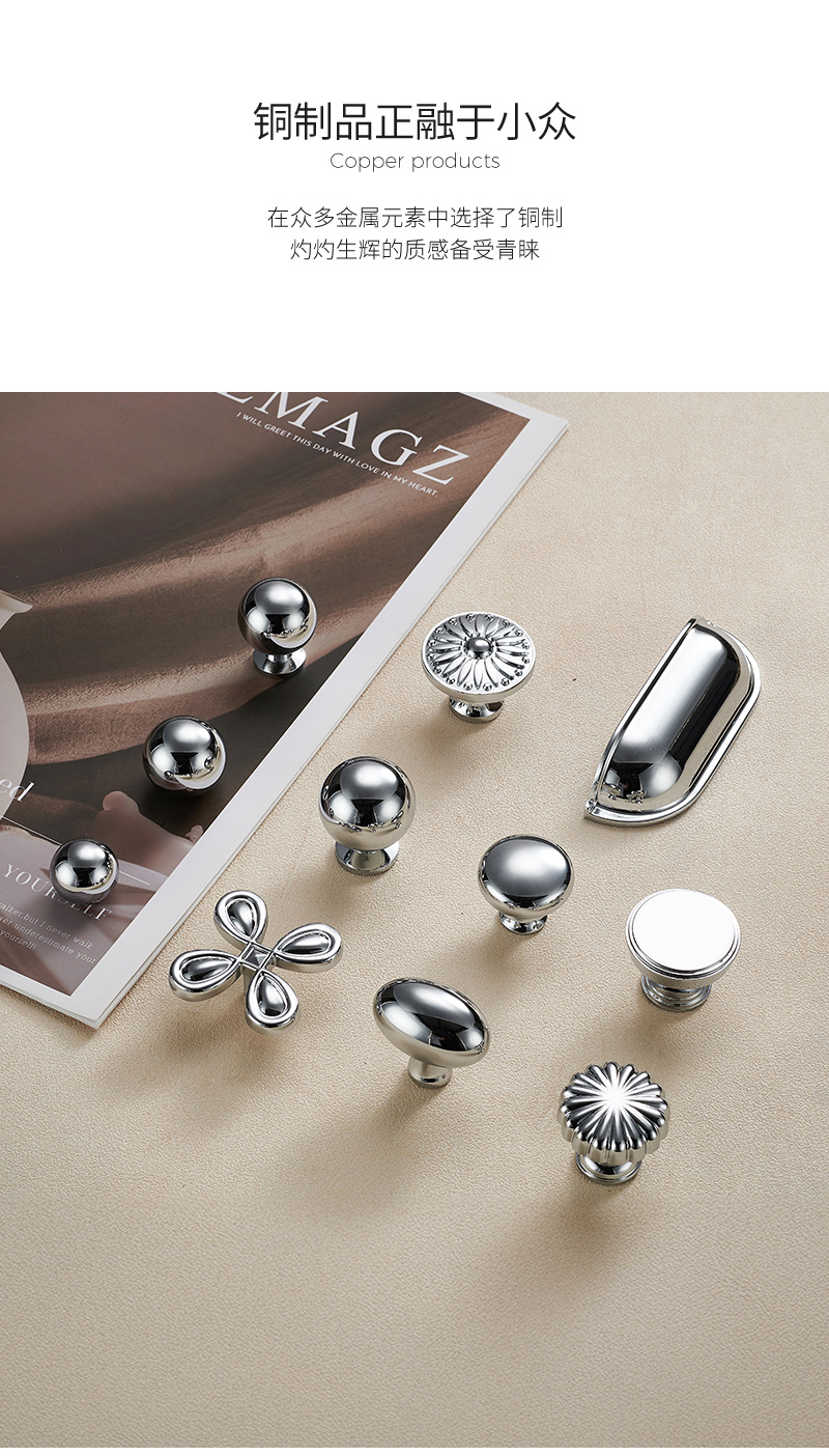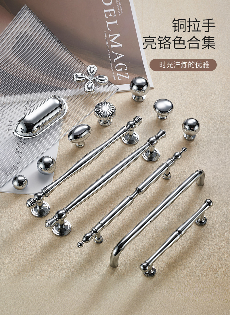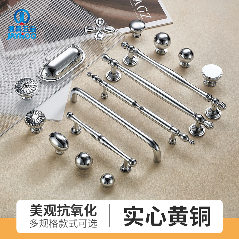Ручка для двери Jiehao во французском стиле, ярко-серебристая, круглая, для шкафа, современная минималистичная, хромированная фурнитура, латунная ручка для двери шкафа