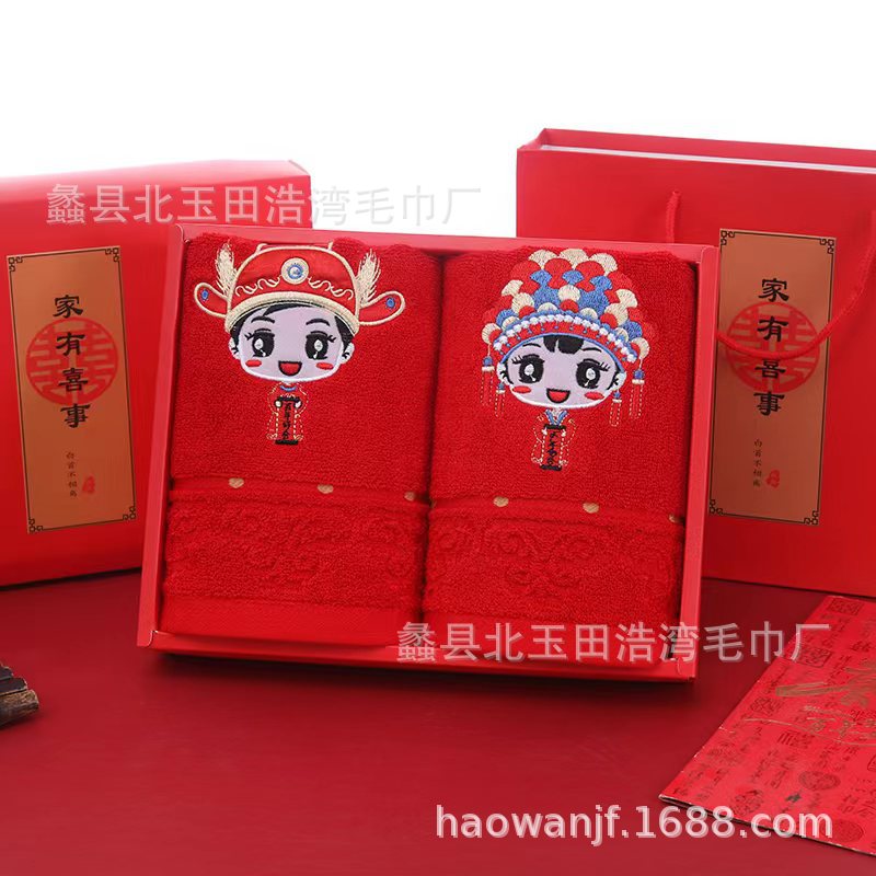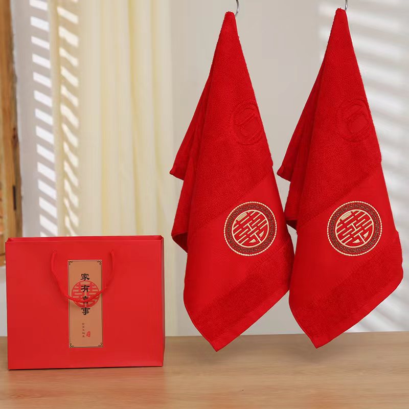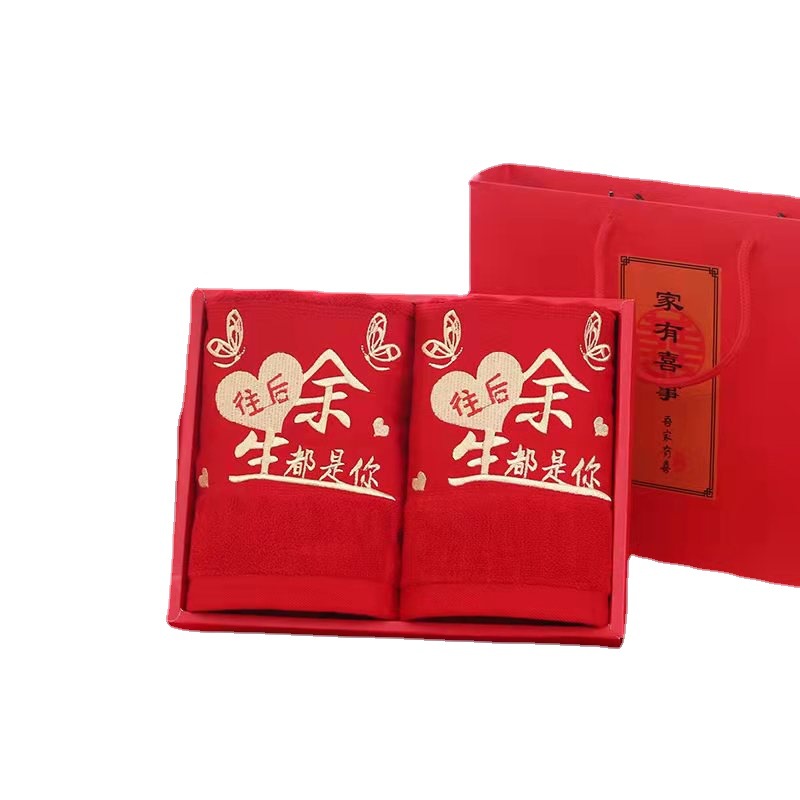 Оптовая продажа фабрики бамбуковое волокно красное свадебное полотенце свадебное Подарочное полотенце Свадебная подарочная коробка обратный подарок с подарком руки Xi PA