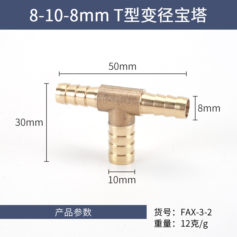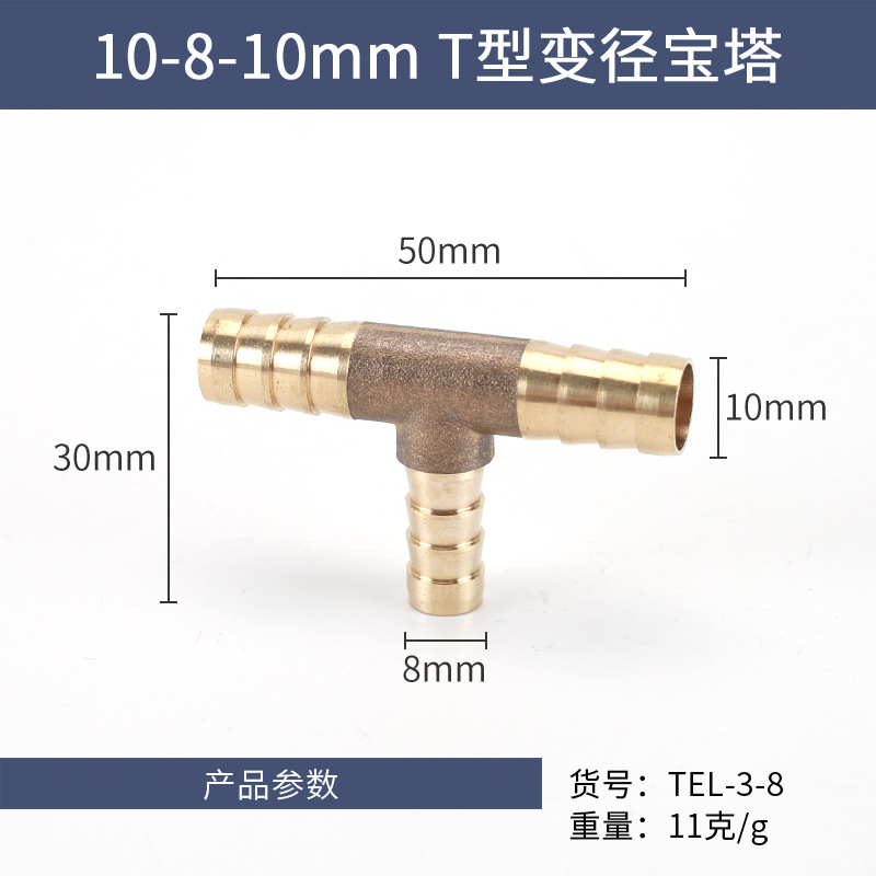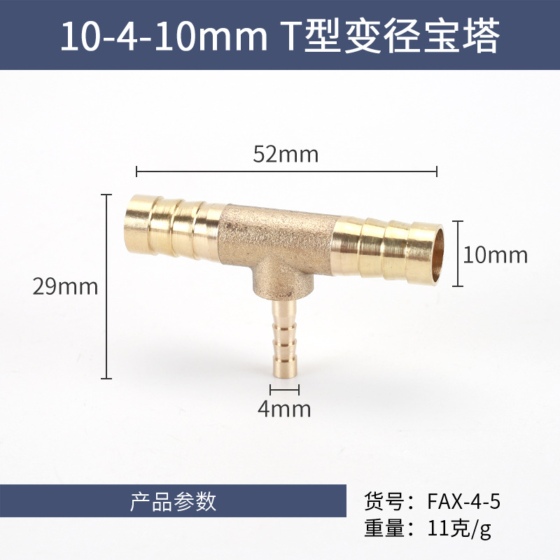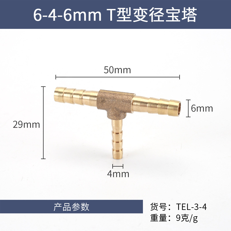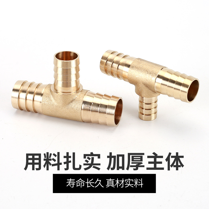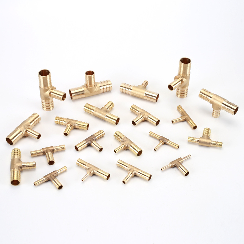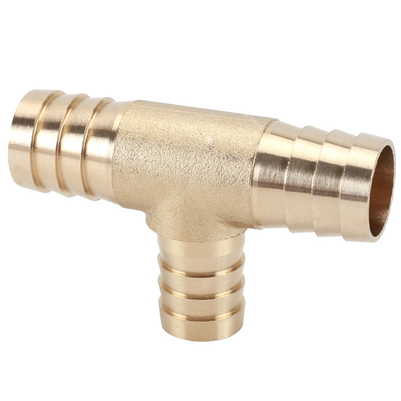Тройник-редуктор Т-образный с равным диаметром, зеленый, для шлангов 4мм, 6, 8, 10, 12, 14, латунный фитинг с шипами для нестандартных трубок