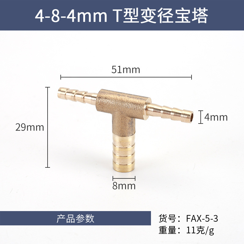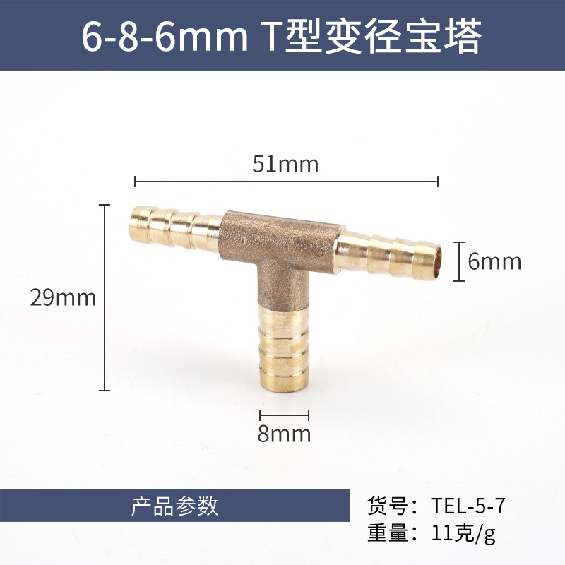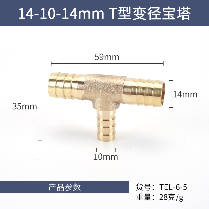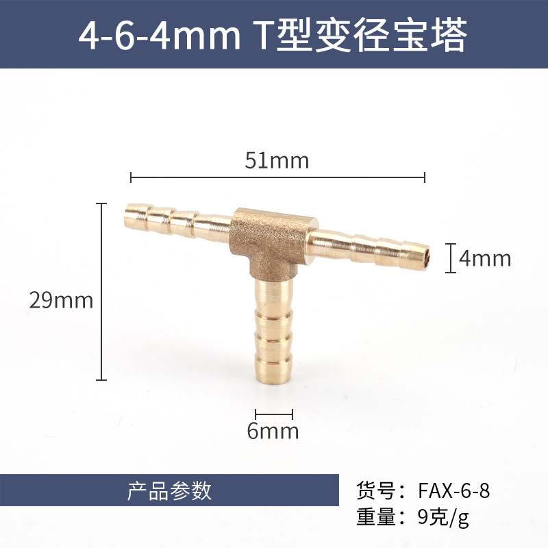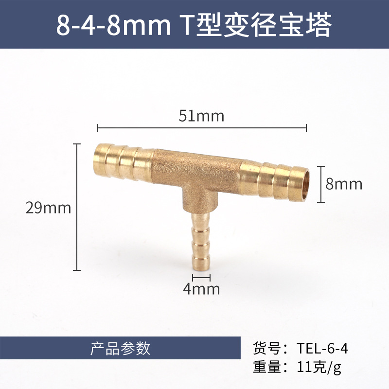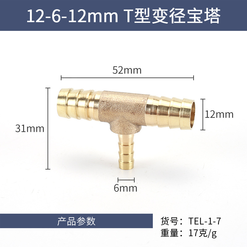 Тройник-редуктор Т-образный с равным диаметром, зеленый, для шлангов 4мм, 6, 8, 10, 12, 14, латунный фитинг с шипами для нестандартных трубок