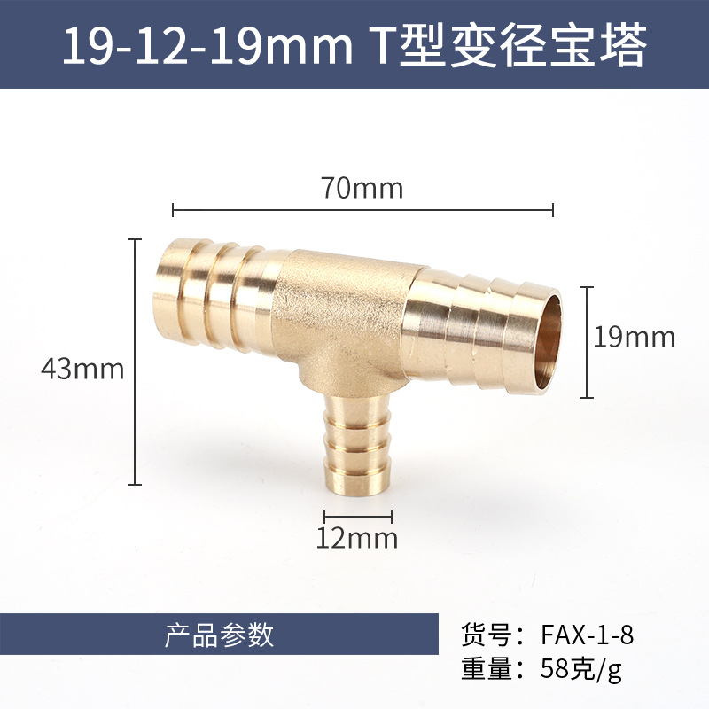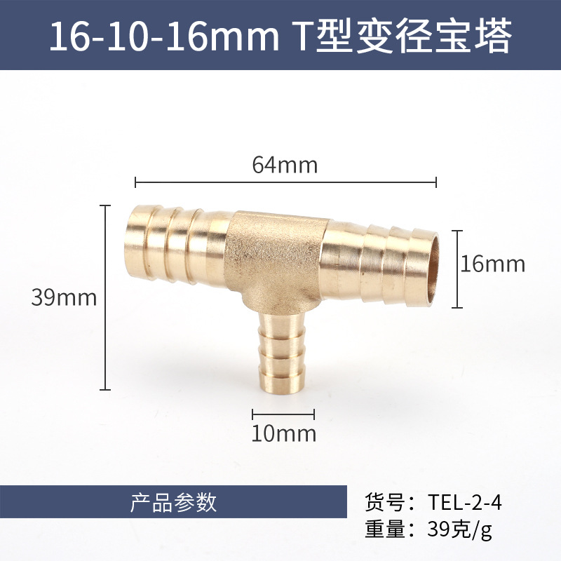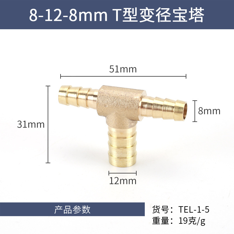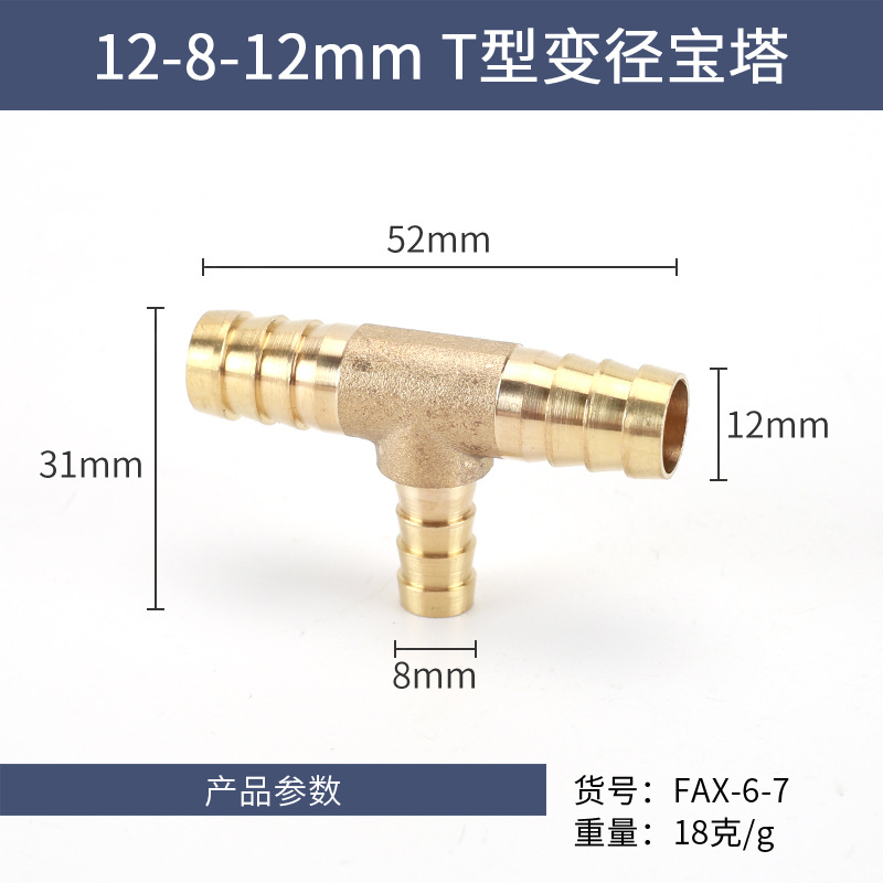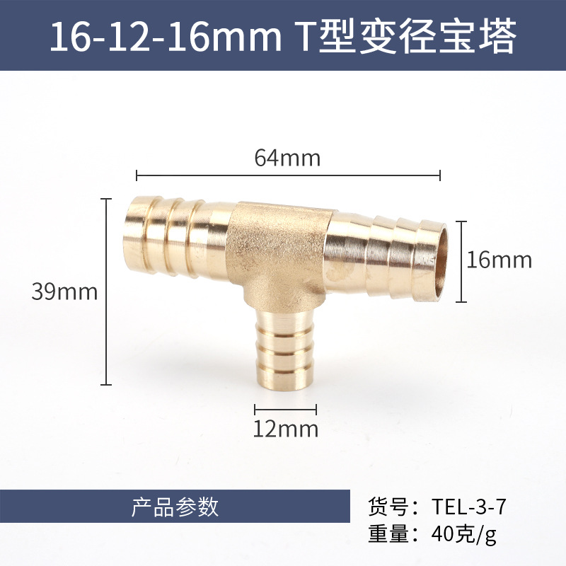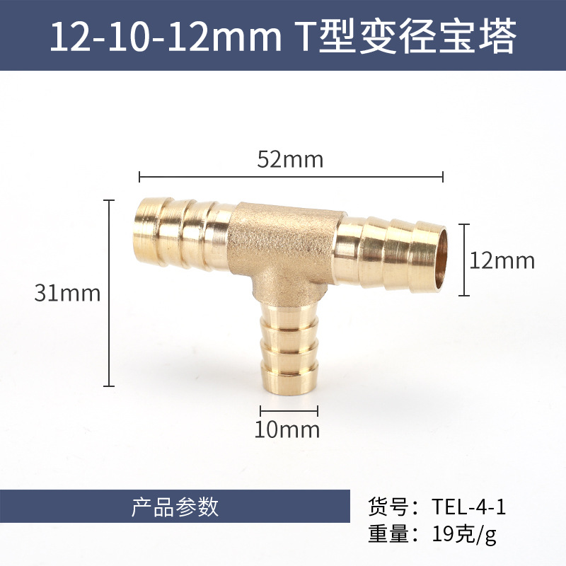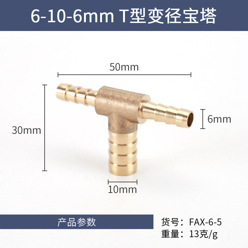 Тройник-редуктор Т-образный с равным диаметром, зеленый, для шлангов 4мм, 6, 8, 10, 12, 14, латунный фитинг с шипами для нестандартных трубок