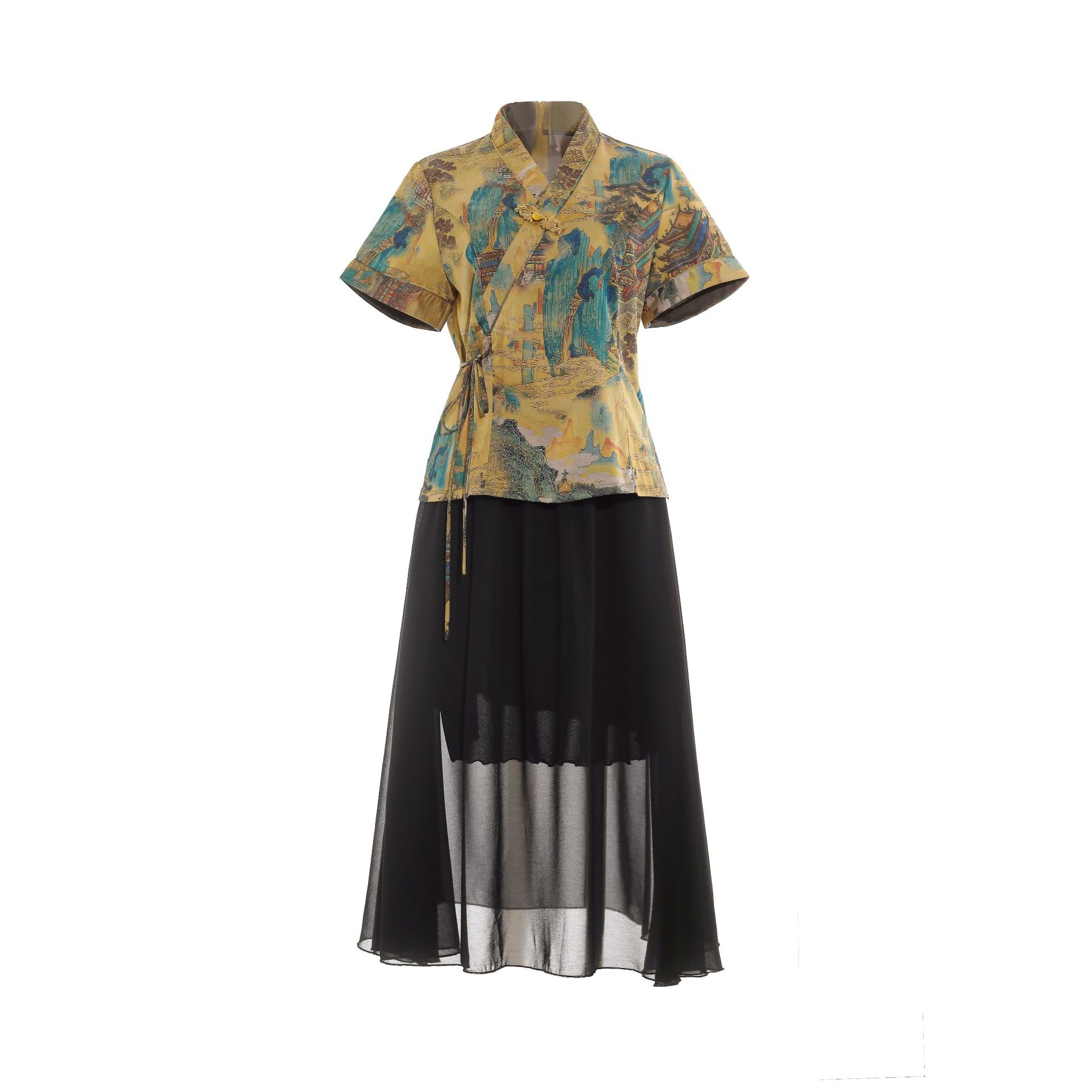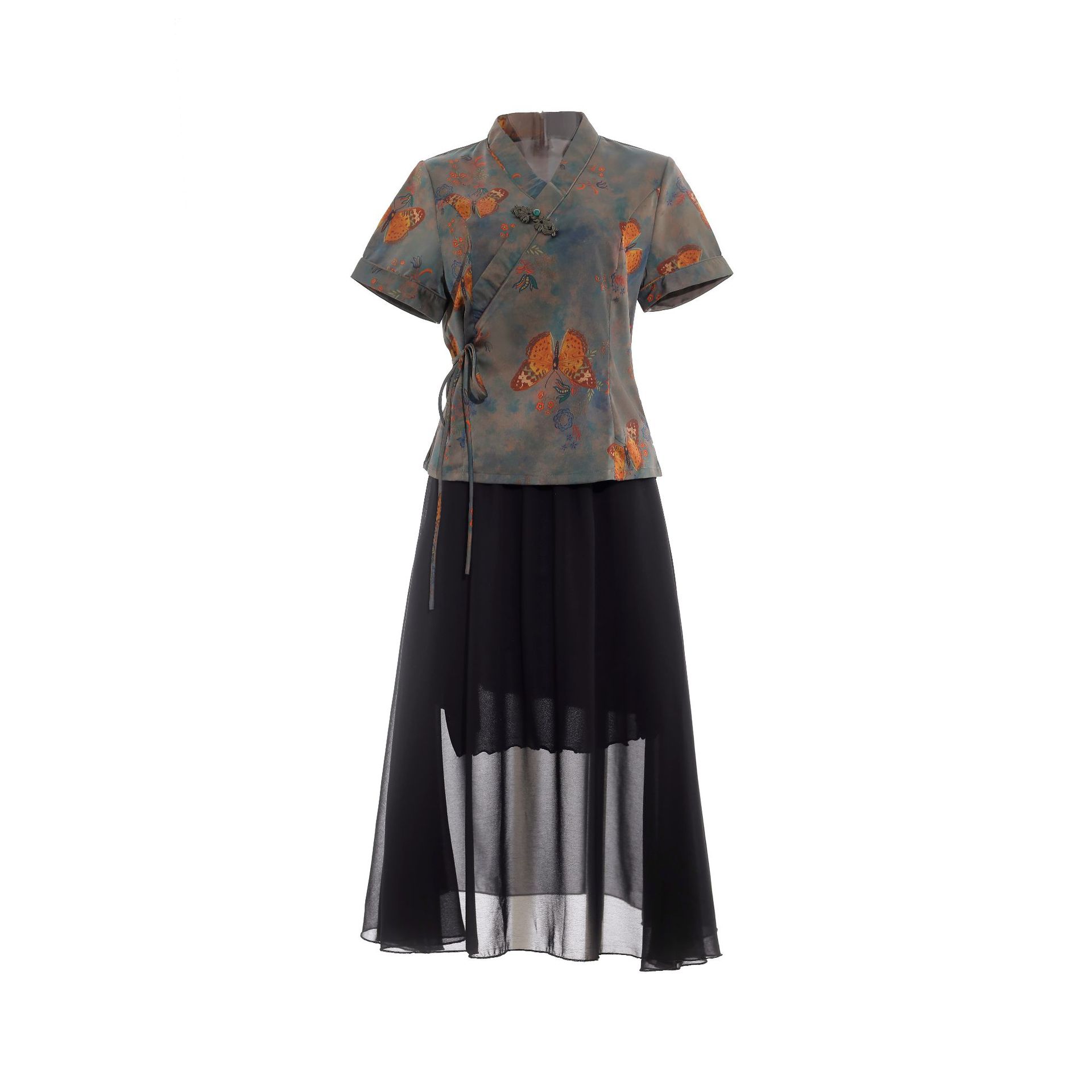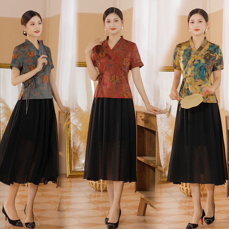 Новинка 2025: летние и осенние женские короткие топы, улучшенный шелковый атласный полуплатье-ципао, китайский наряд для выступлений, оптом.