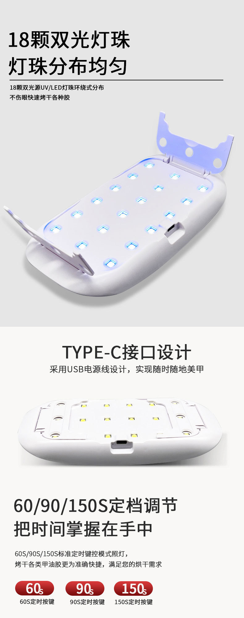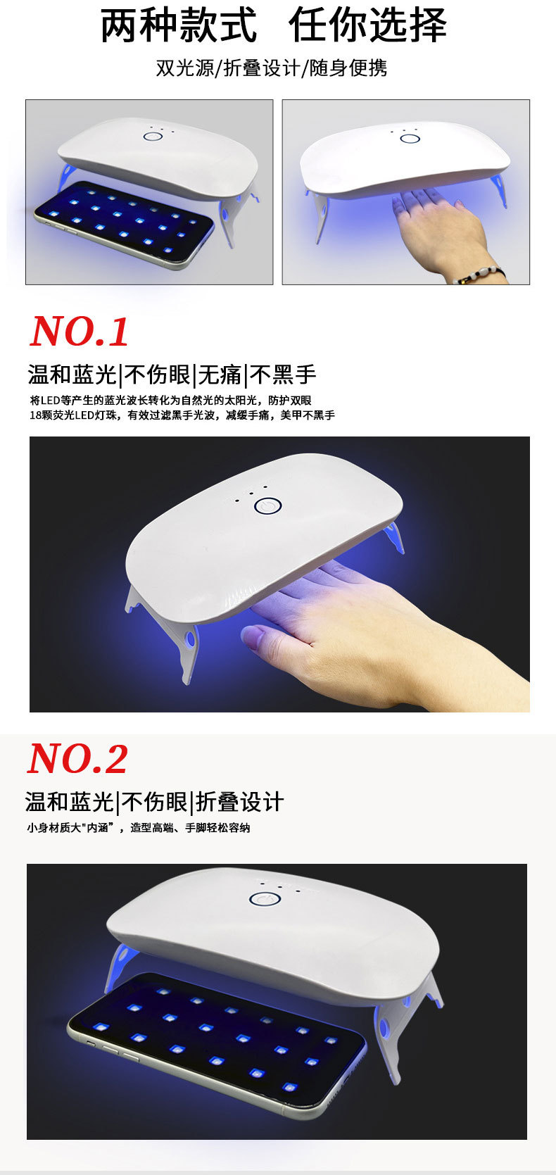 Лампа для маникюра с двумя источниками света, 18 светодиодов, УФ-лампа для сушки ногтей, мощная перезаряжаемая лампа для маникюра, фототерапевтический аппарат для сушки ногтей
