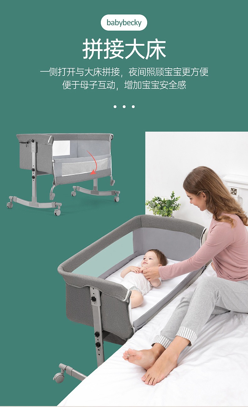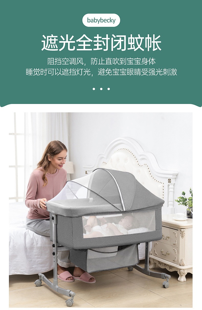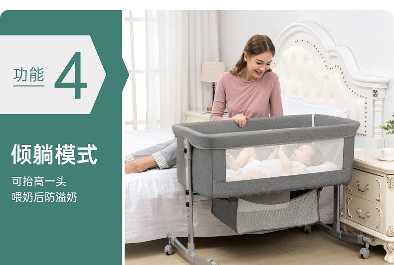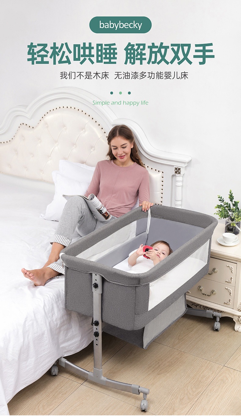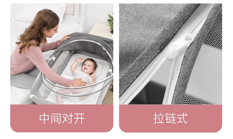 Детская кроватка Складная переносная Колыбель Прикроватная кровать Мобильная детская кровать Корзина Кровать для новорожденных Сращивание Большая кровать