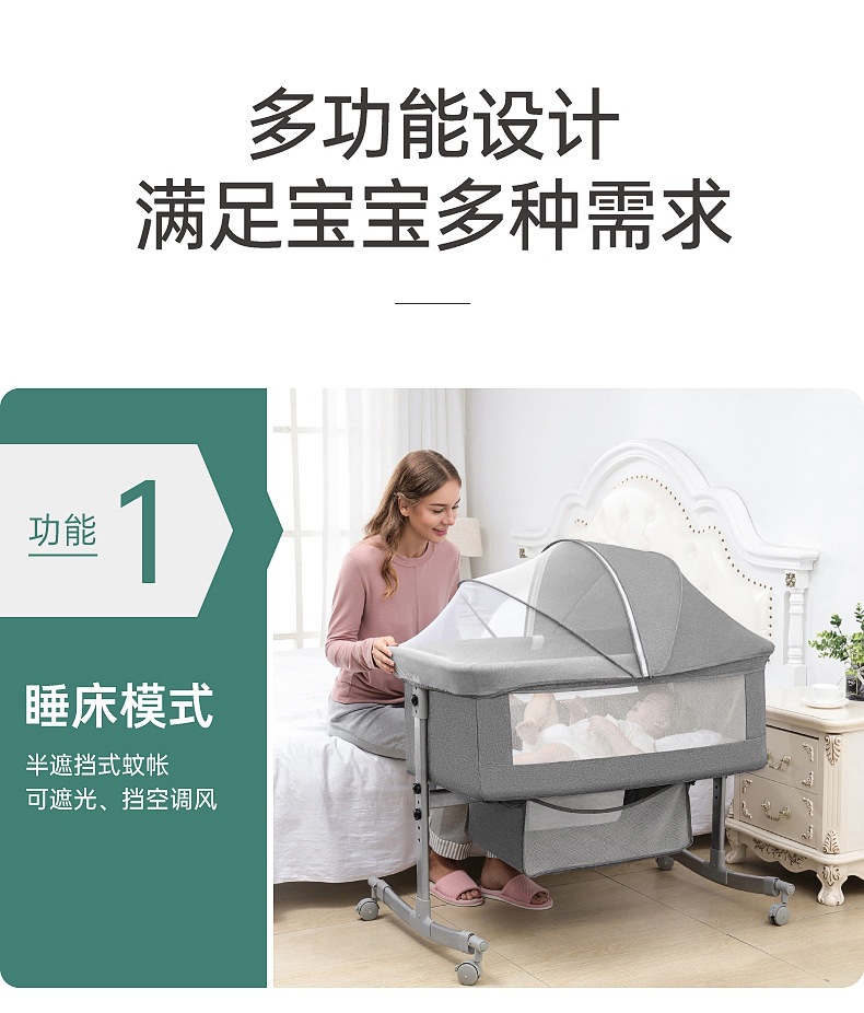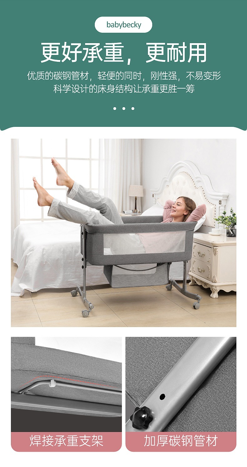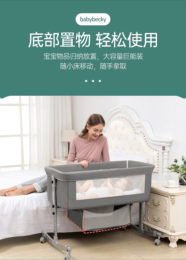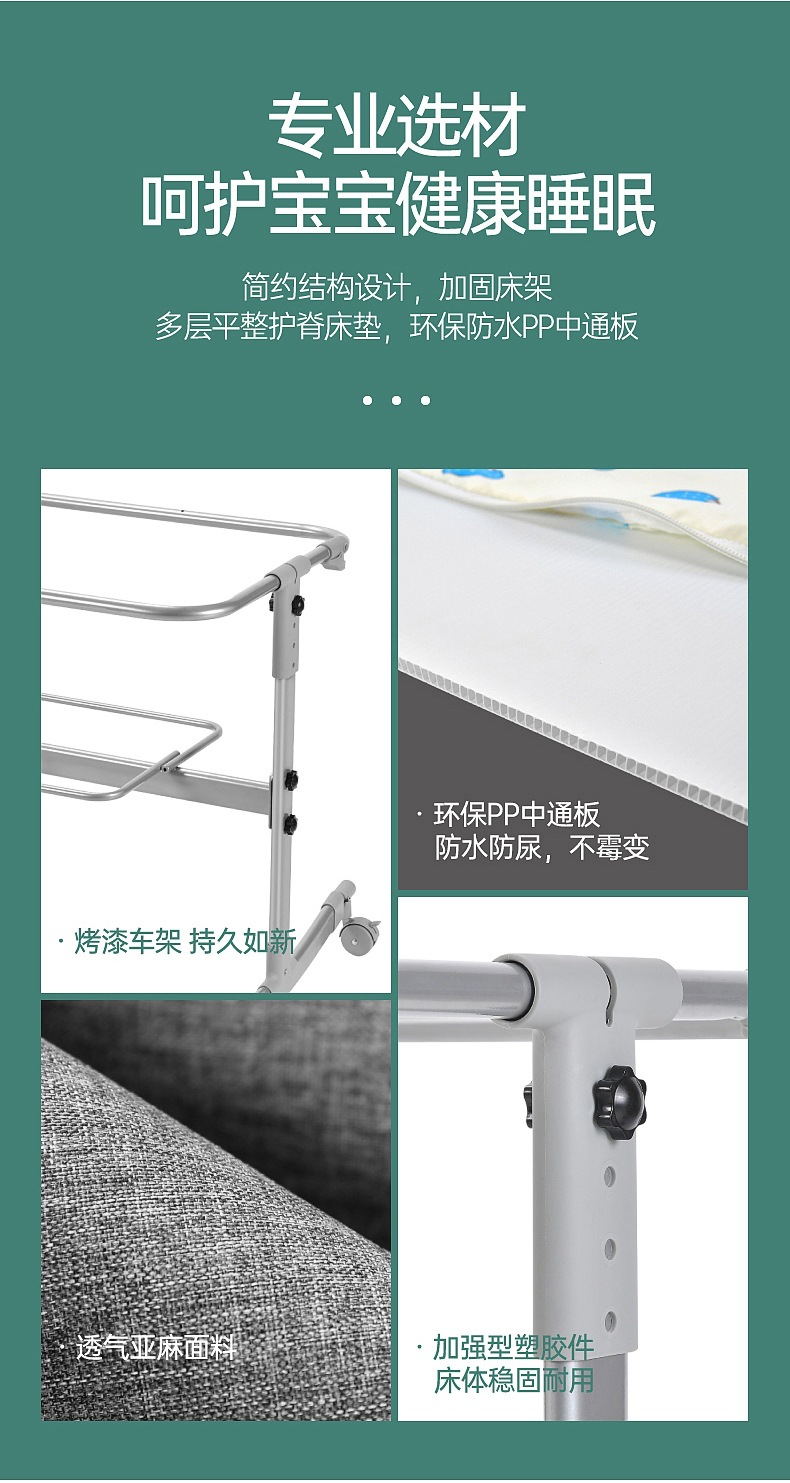 Детская кроватка Складная переносная Колыбель Прикроватная кровать Мобильная детская кровать Корзина Кровать для новорожденных Сращивание Большая кровать
