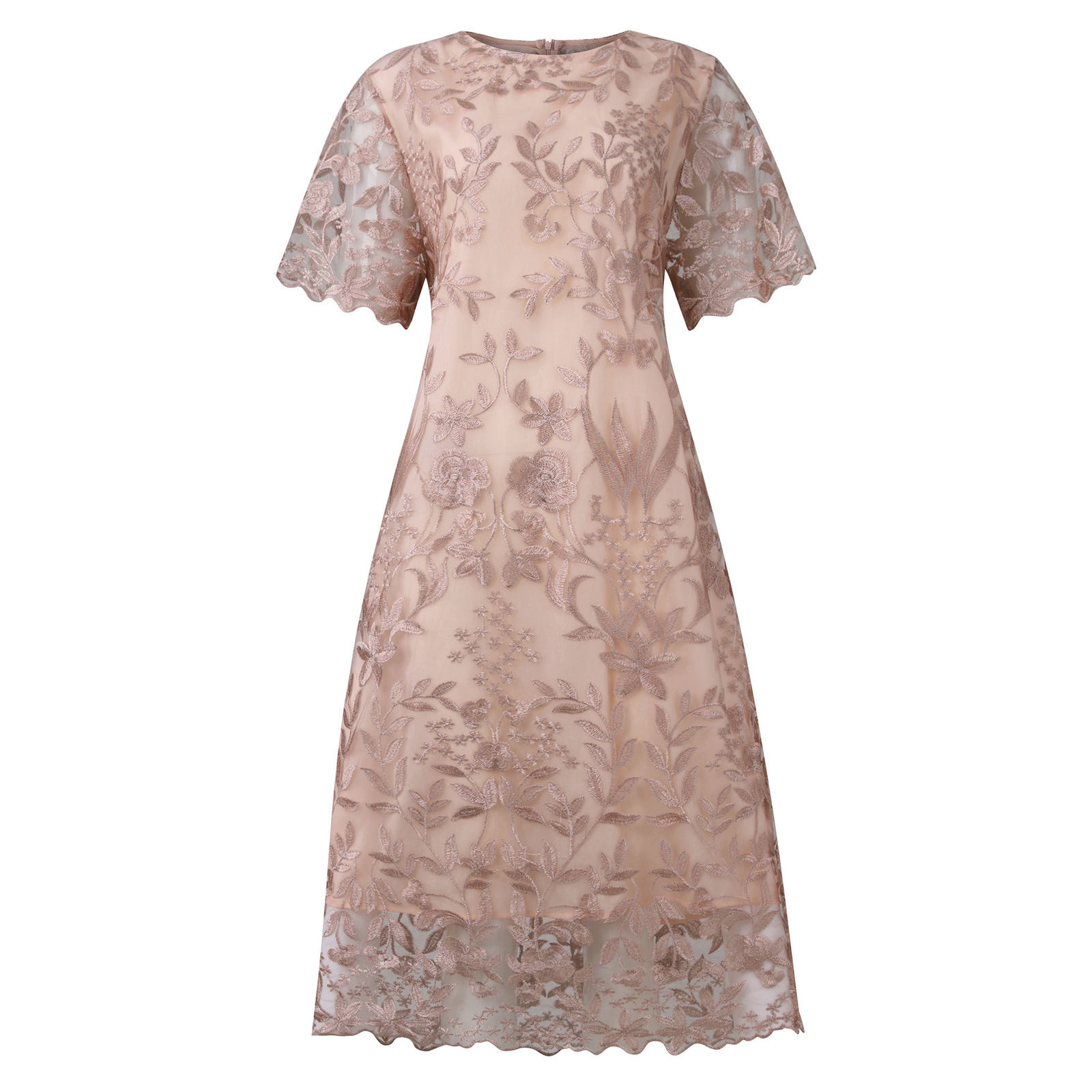 Европа и США трансграничный весенне-летний сезон Новое женское платье больших размеров, Вышитое кружевное тонкое коктейльное платье с вышивкой
