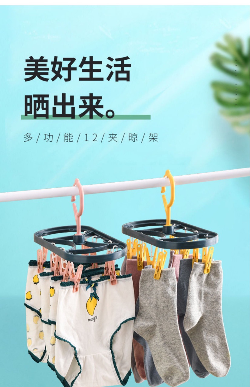 Стойка для сушки с 12 зажимами для дисков Многоцелевые трусики с зажимом Детское нижнее белье Зажим для подгузников Бытовая детская сушилка для носков