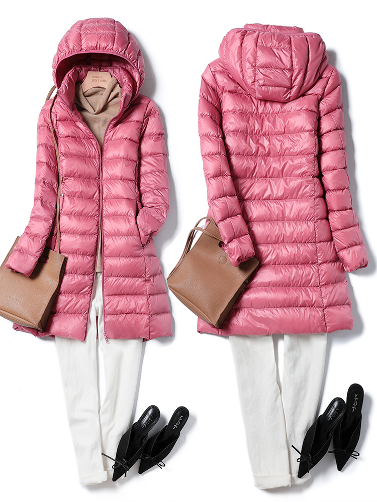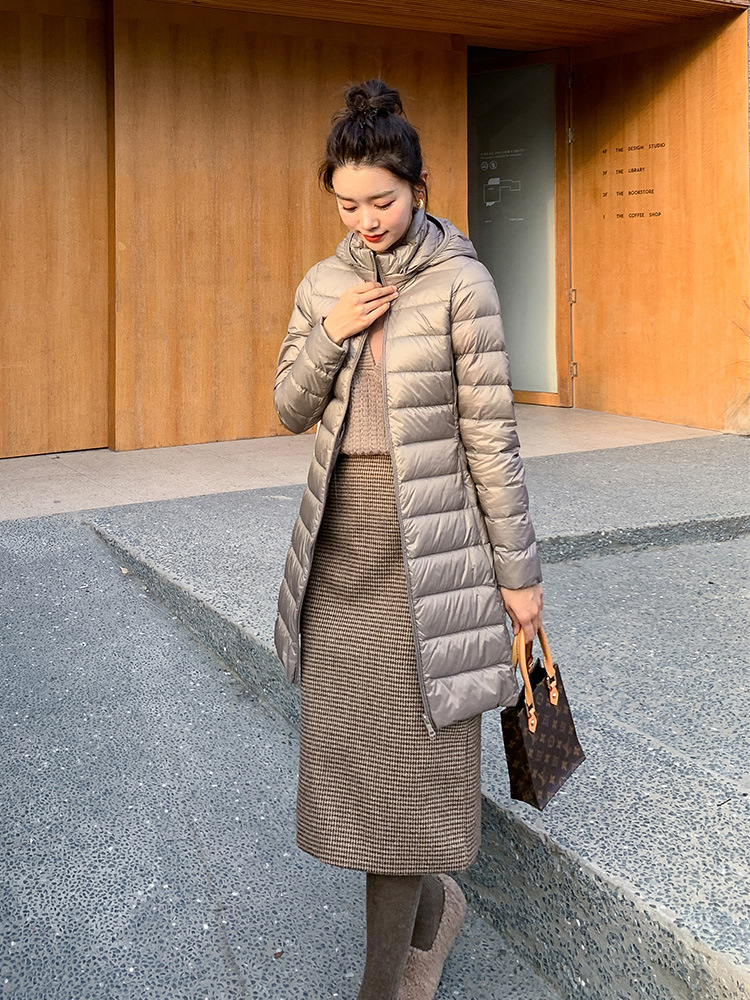 Трансграничный легкий пуховик женский средней длины, зима 20225, новый стиль, съемный капюшон, тонкий пуховик большого размера с капюшоном, белый утиный пуховик