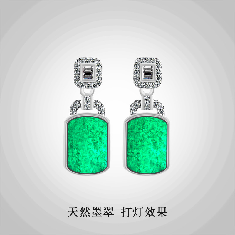 Натуральный жадеит A товары чернила нефритовые серьги S925 серебро, инкрустированное чернилами Нефрит Модные женские серьги Высококачественная атмосфера оптом