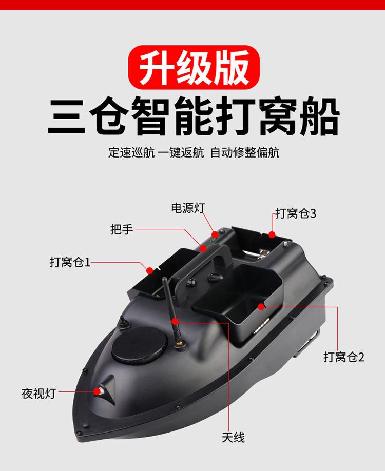Интеллектуальный катер-прицепчик Yuxiaojiang с дистанционным управлением, трехместный грузовой катер, с GPS и функцией автоматического возврата к базе, для вытягивания сначал, высокоскоростной, мощный