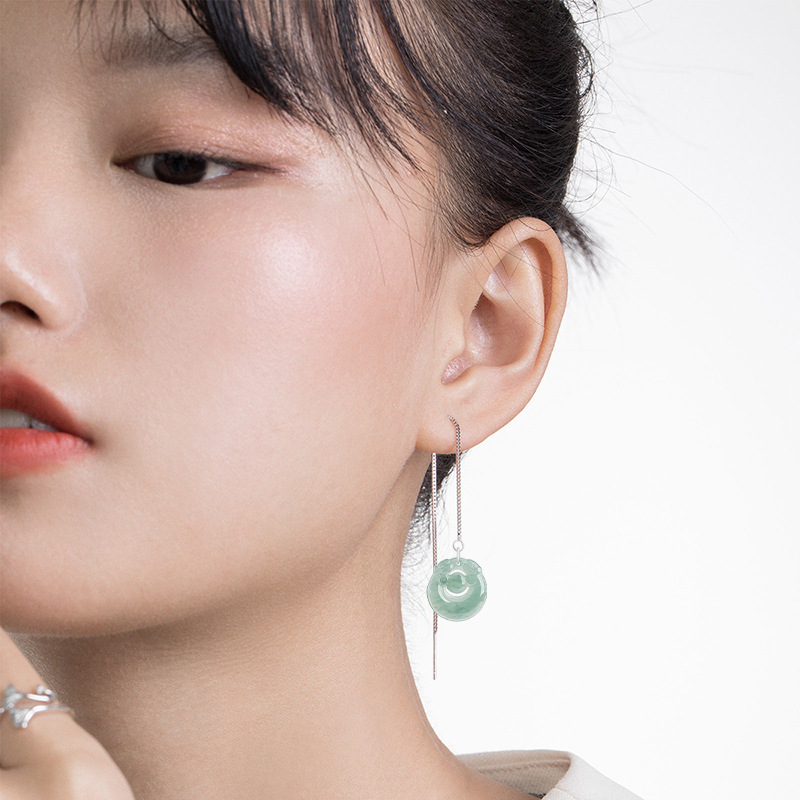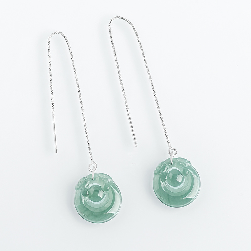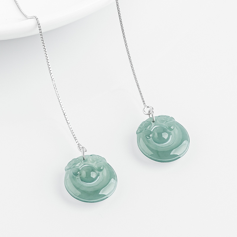 Натуральный жадеит синяя вода Двойные драконы ухо S925 женские высококачественные серьги