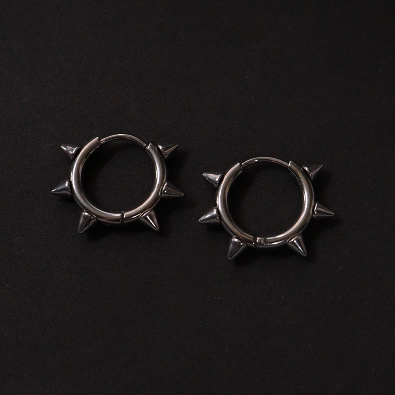 跨境热销不锈钢耳扣朋克风耳夹圆线六尖耳环男女款DIY耳饰批发