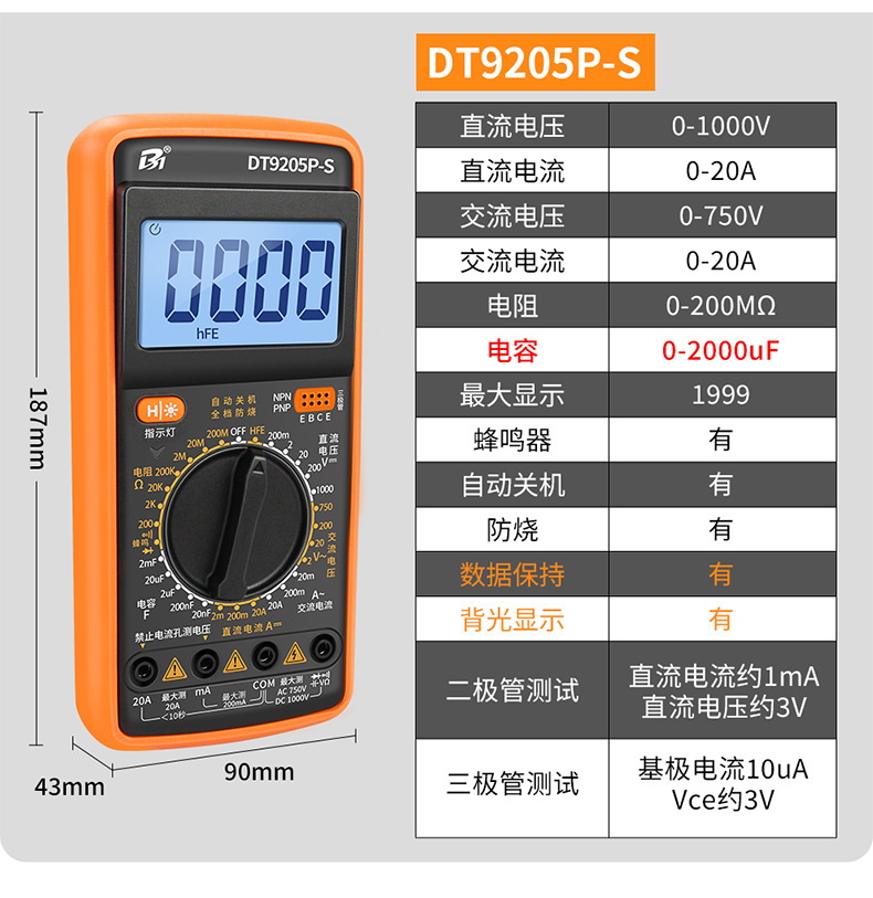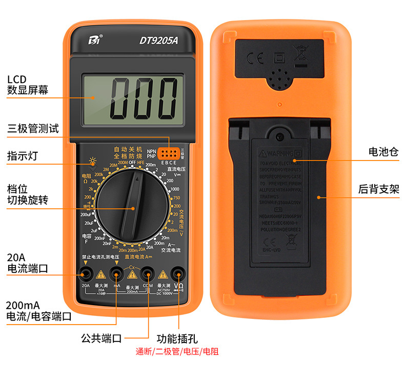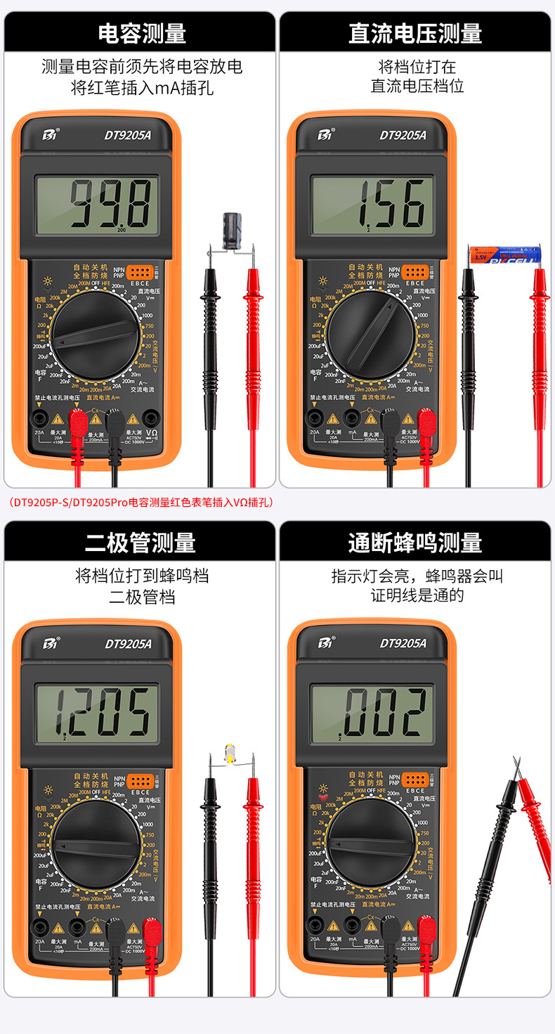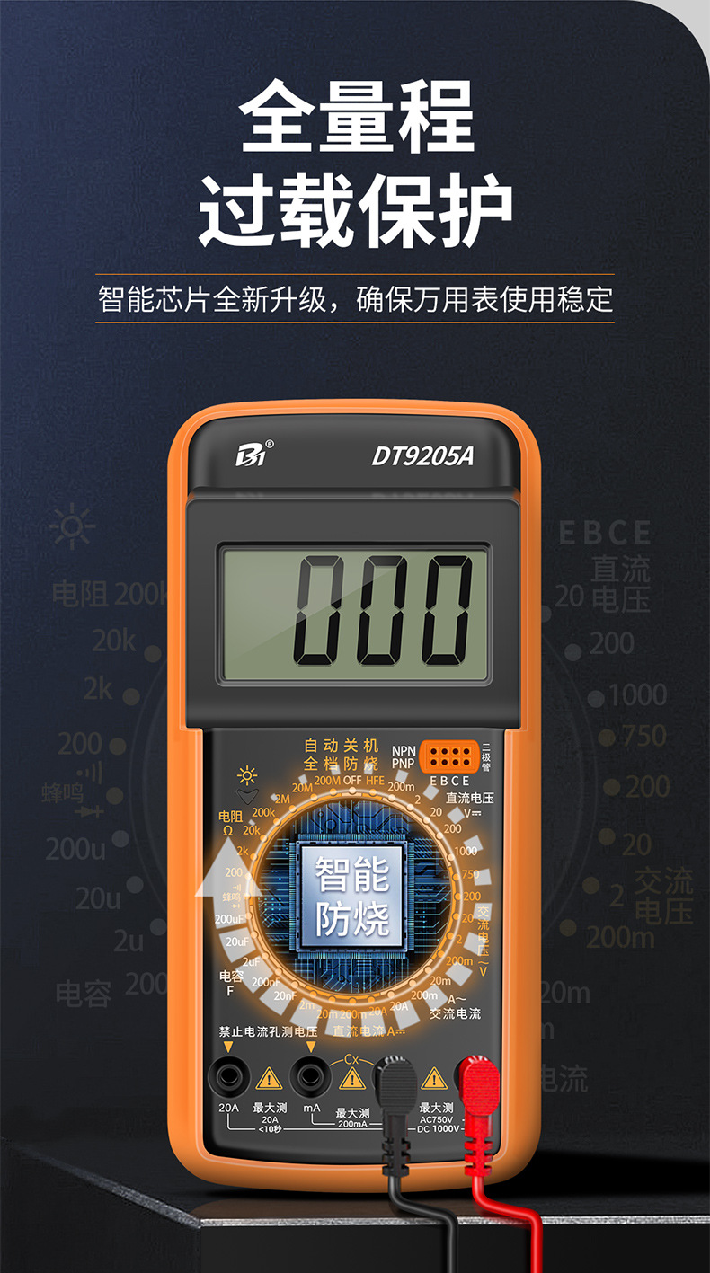 Мультиметр цифровой дисплей Высокая точность антигорения универсальный метр DT9205A 9205P-S 9205PRO